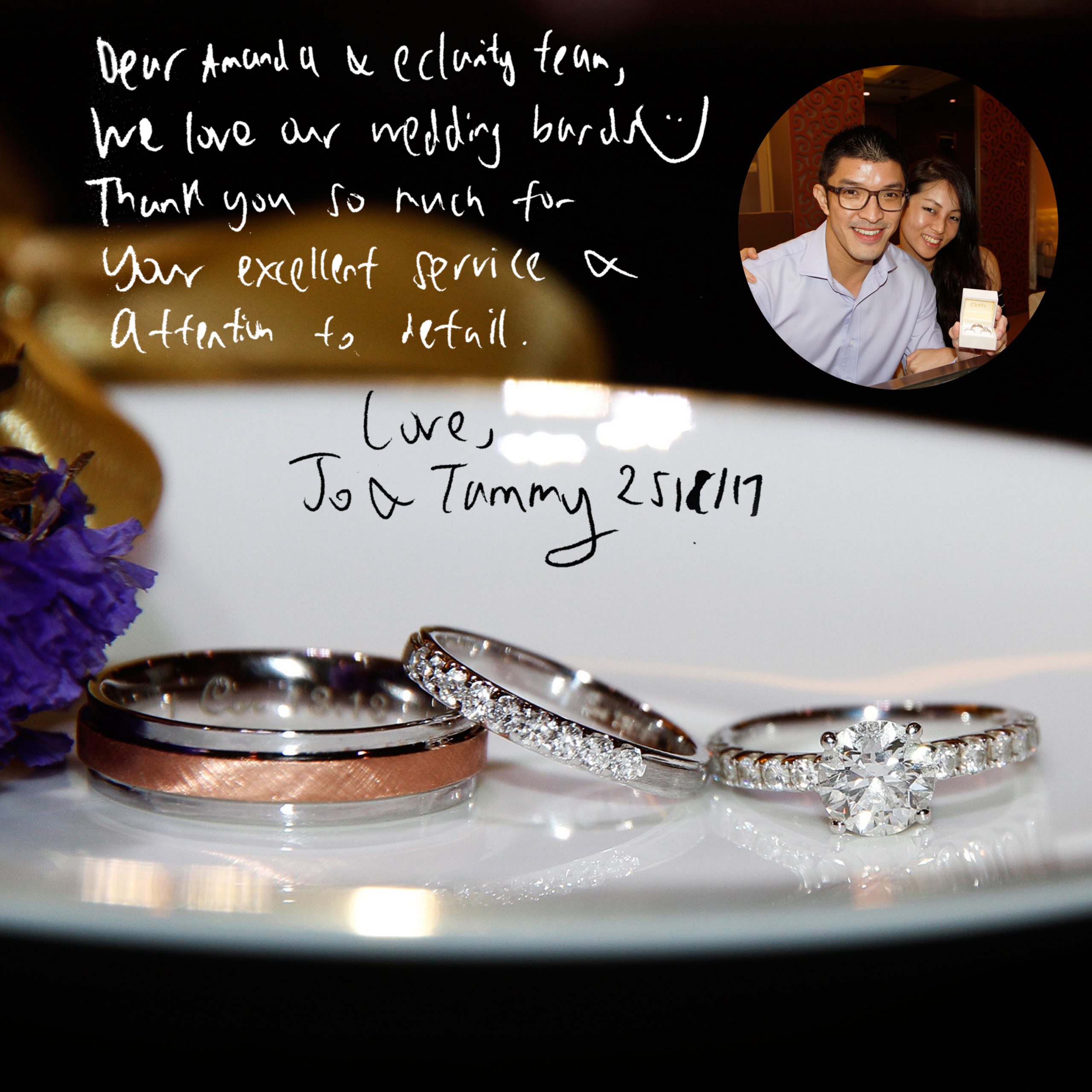 “Thank you eClarity for the wonderful service & the lovely rings.” – Francis & Joy