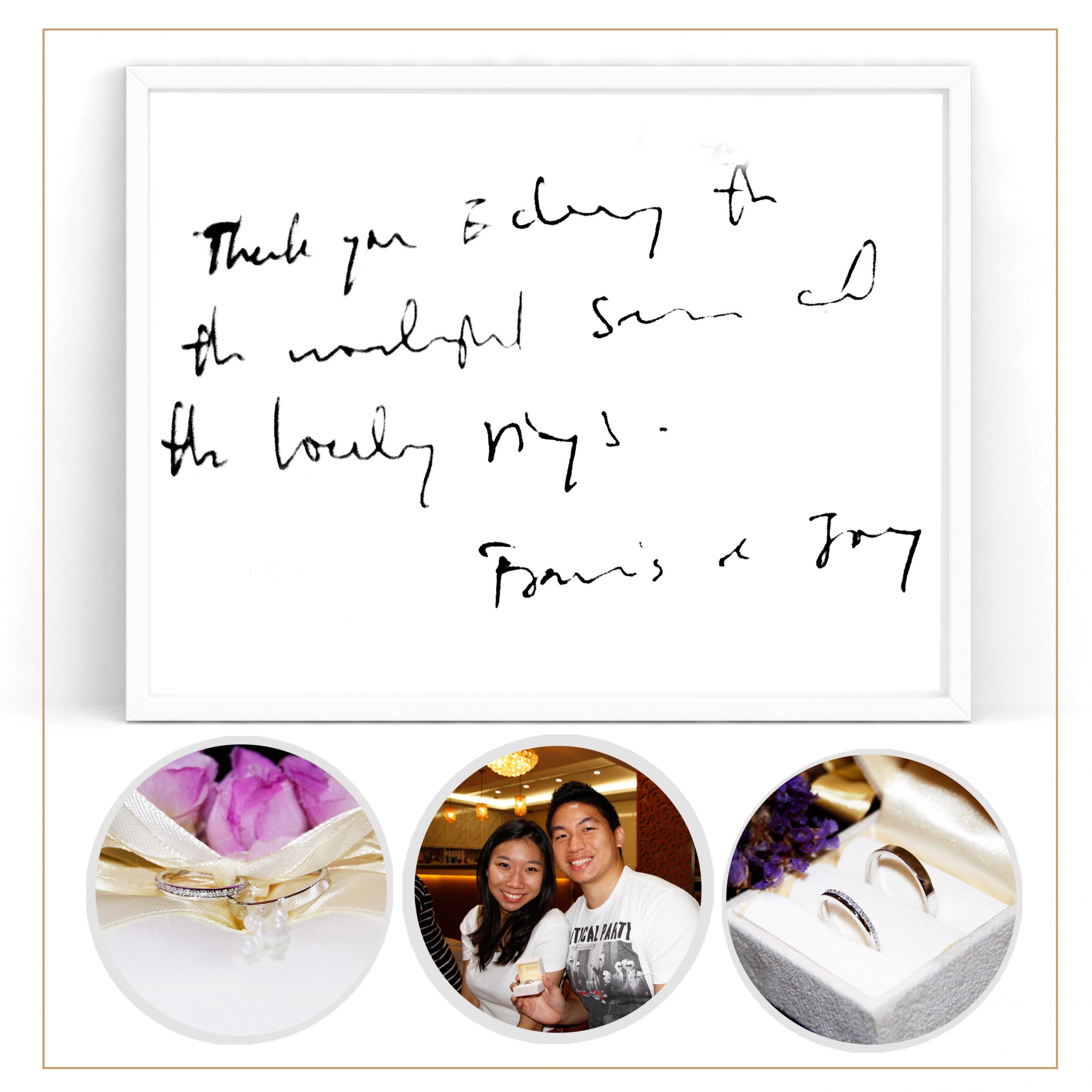 “Hi Amanda & Chris, thanks so much for the service provided throughout the while process, from selection to learning the different kinds of my finishing. As well as the patience provided! Thanks!” – Yi Heng & Chia Chuin