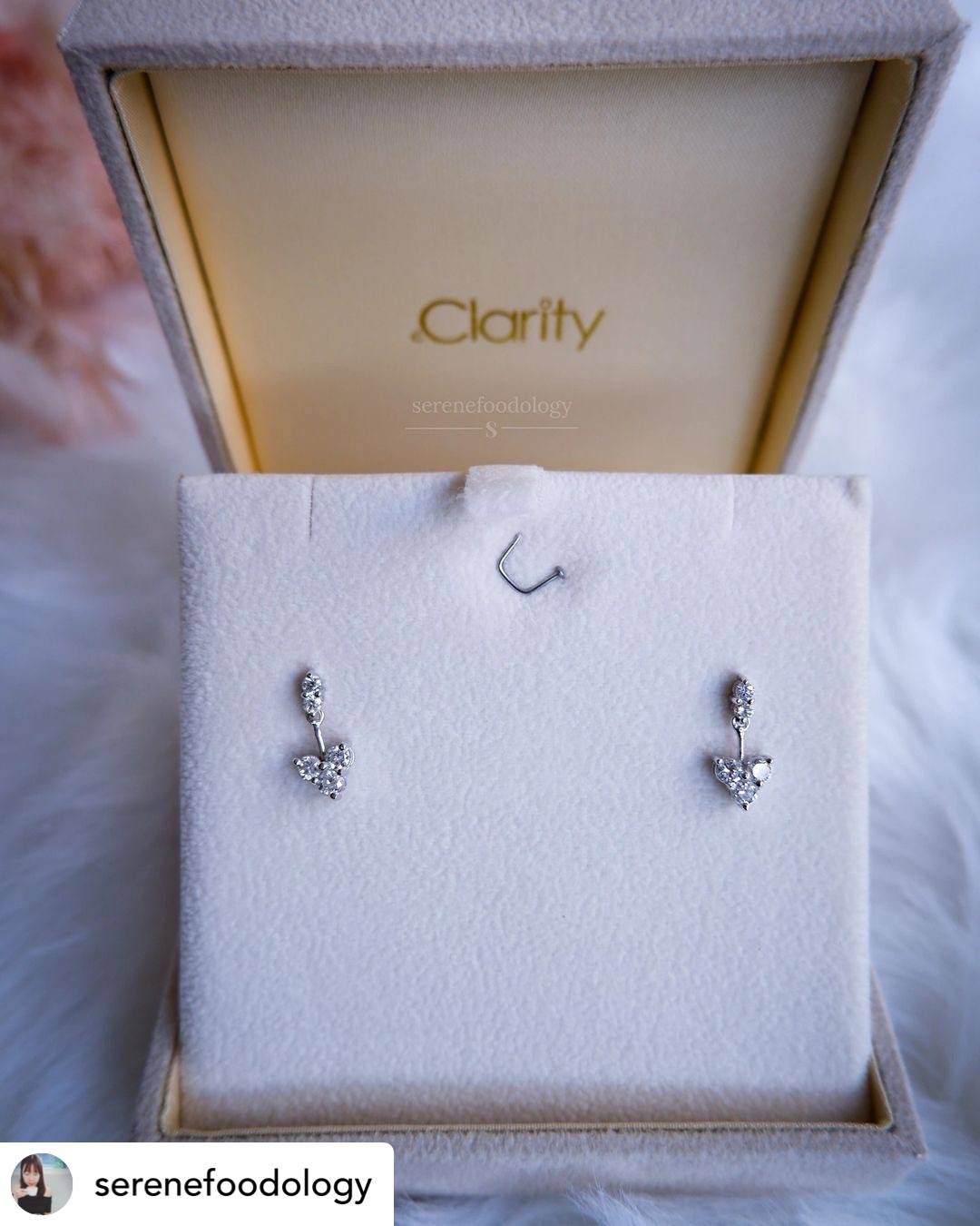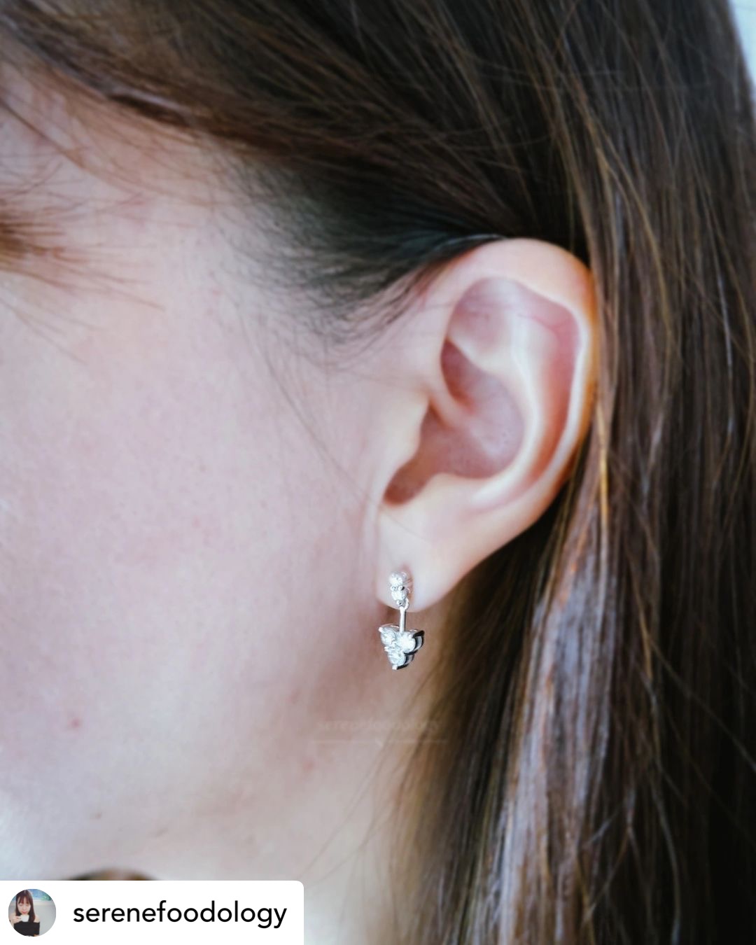 Dangling heart-shaped diamond earrings with 10 round brilliant diamond 0.8 carat in 18k white gold.