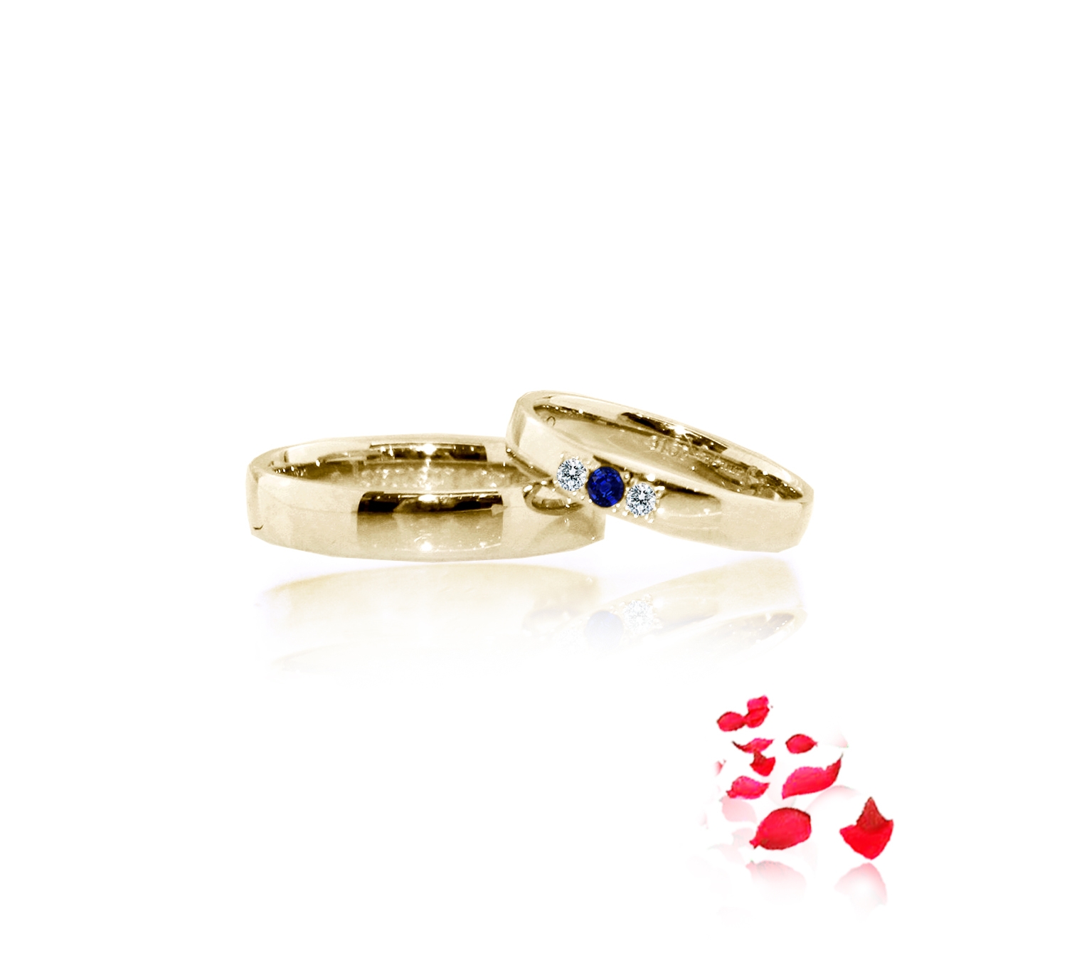 The #eClarity bespoke wedding bands exemplifies everything eClarity stands for: uniqueness, class, and love. eClarity customization of #weddingbands with #diamonds and #bluesapphire in 18k champagne gold.