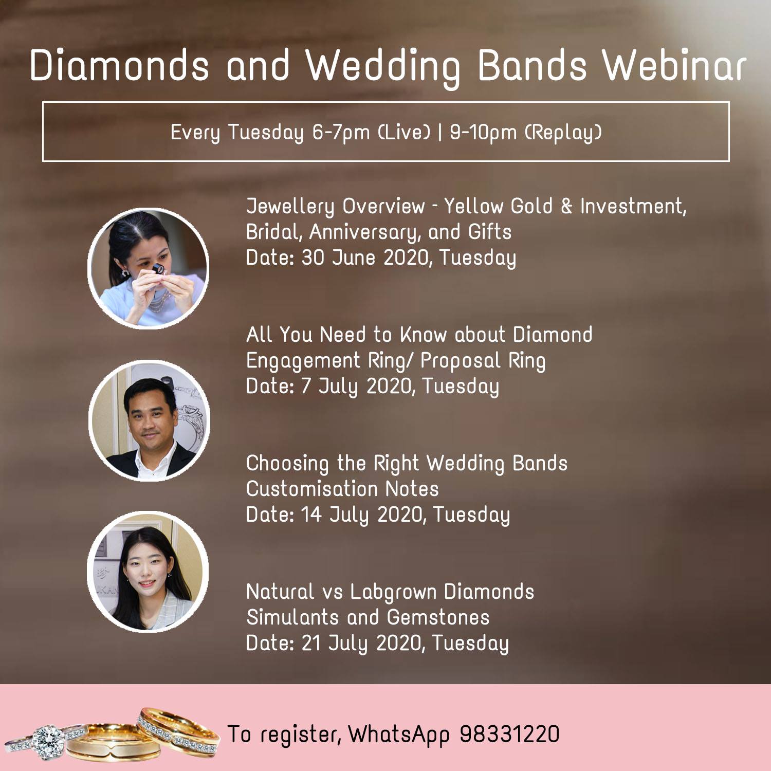 Please click here to register or send a message to +65 9833 1220 for free webinar.” Here’s original article: https://singaporebrides.com/wedding-show/29-apr-20-may-eclarity-engagement-rings-wedding-bands-webinars-4-key-topics/
