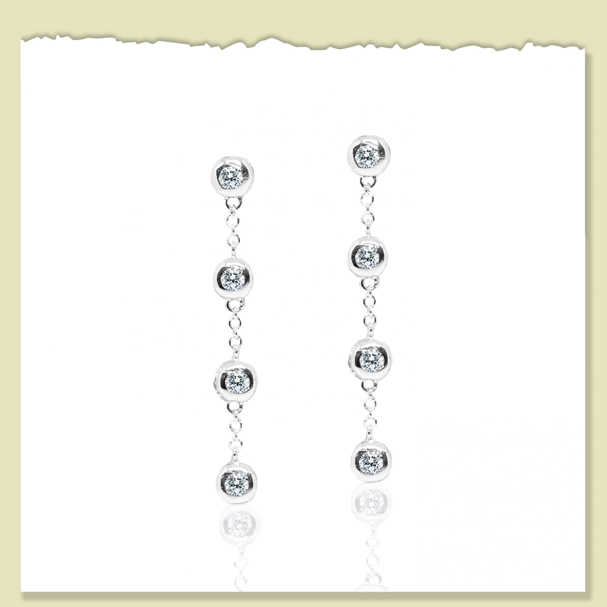 Classic and feminine. A linear row of diamond drop highlights beauty, class and sophistication. Among the dangling creations, this design is exclusively modern and slender.