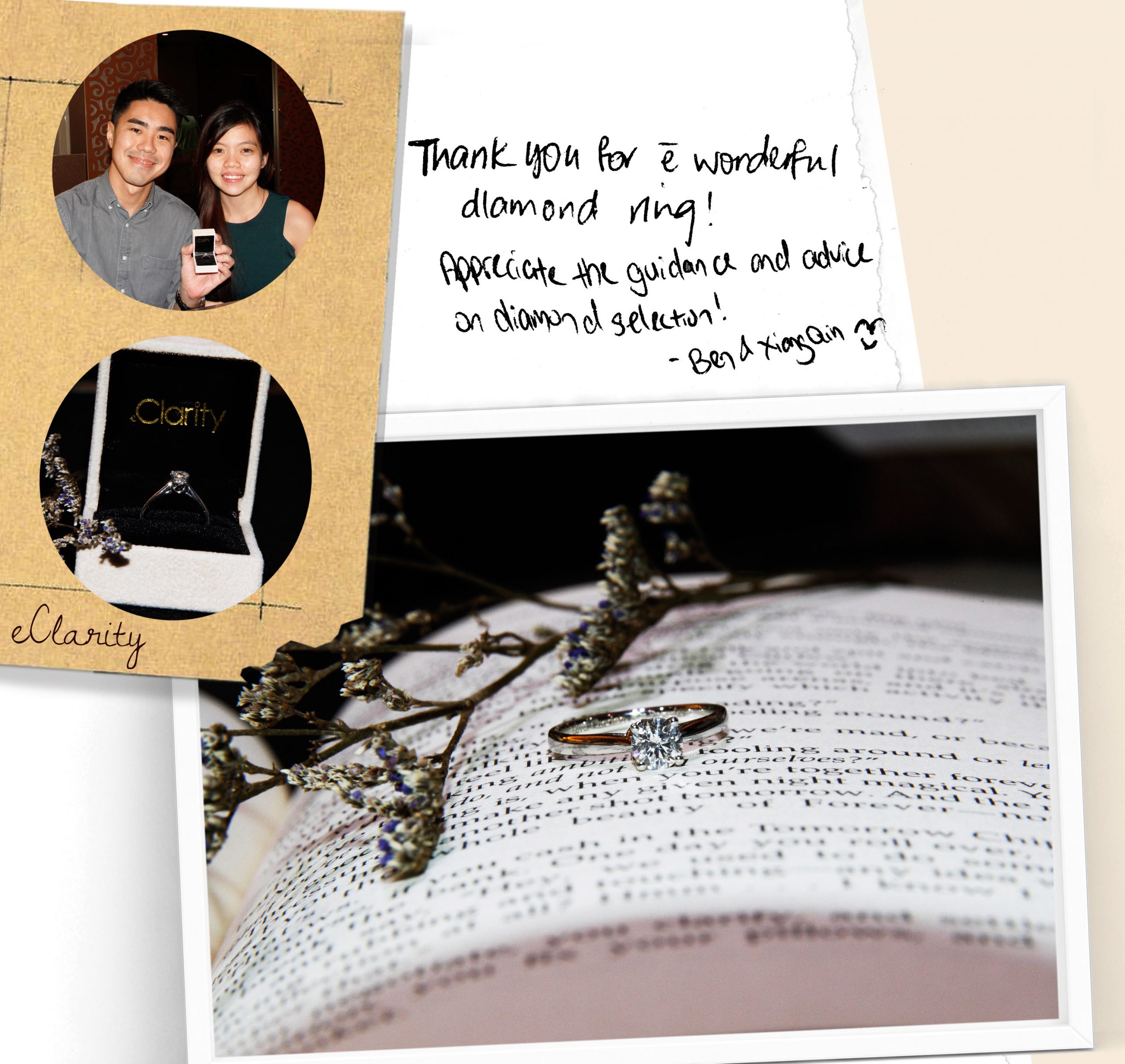 “Thank you for the wonderful diamond ring! Appreciate the guidance and advice on diamonds selection!” – Ben & Xiang Qin