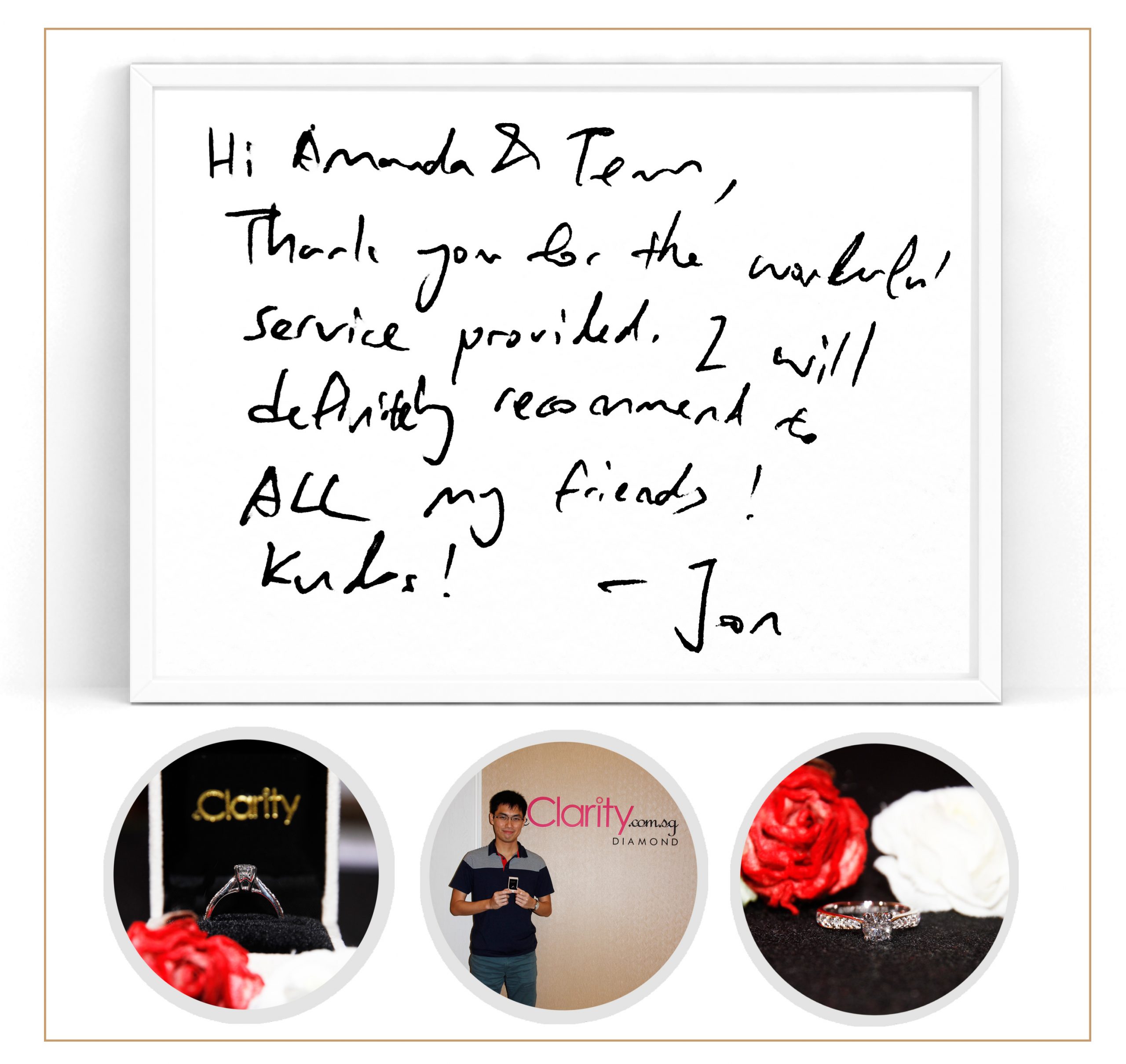 “Hi Amanda & team, thank you for the wonderful service provided. I will definitely recommend to ALL my friends! Kudos!”- Jon