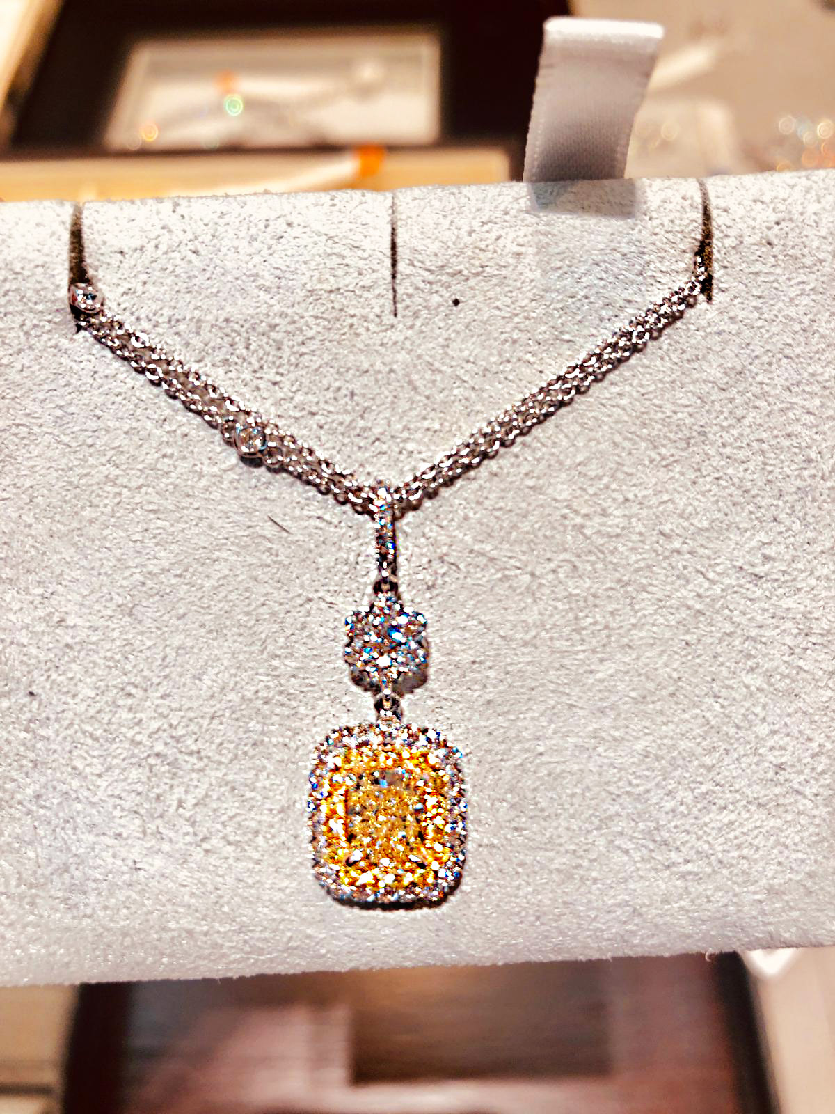 Uncategorized eClarity Exclusive Collection – Fancy Yellow Diamond Necklace June 11, 2024 Posted by eclarity 12 Sep Striking Yellow. Exceptionally valuable and beautiful, rare fancy colored diamond is a remarkable proof to the charm of mother nature. Vivid fancy yellow diamond is the graceful symbol of warmth and affection. #eClarity #shoplocalbrands Discover more: http://bit.do/e8mko