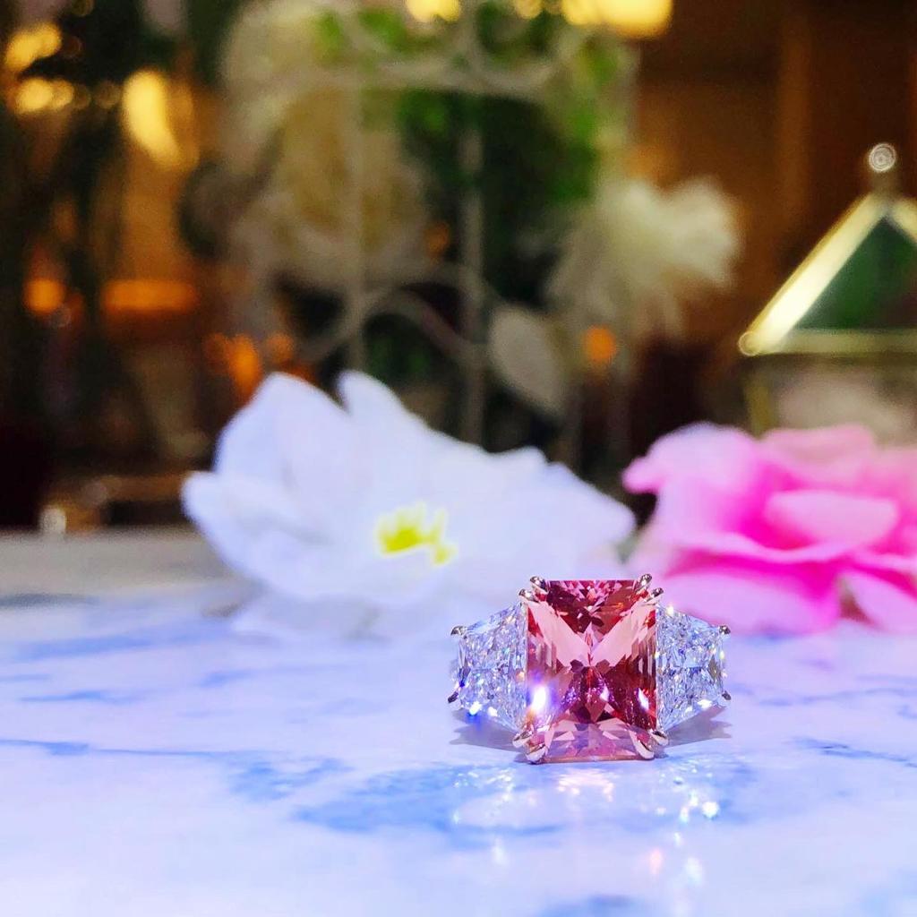 Emerald Cut Pink Sapphire in 18k White Gold