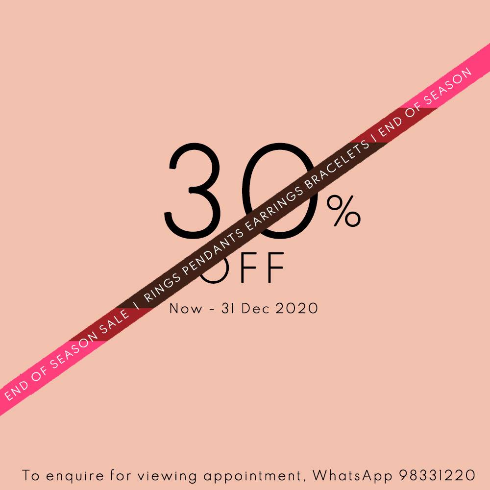 END OF SEASON SALE + 12.12 SALE: Enjoy 30% + 12% off storewide on rings, earrings, pendants, and bracelet