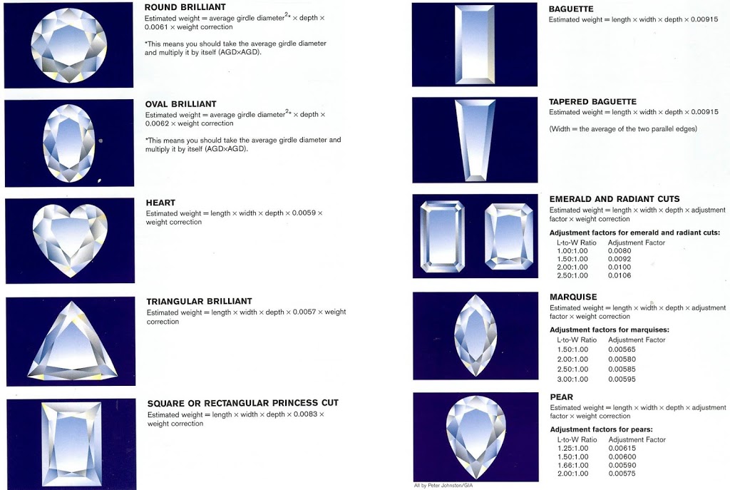 Diamond professionals use mathematical formulas to estimate the weights of mounted round and fancy-cut diamonds. The formulas assume fairly standard, modern proportions and basically symmetrical designs. Courtesy: #GIA. Photo: Peter Johnston. Resource: Amanda Koo #eClarity#Diamonds