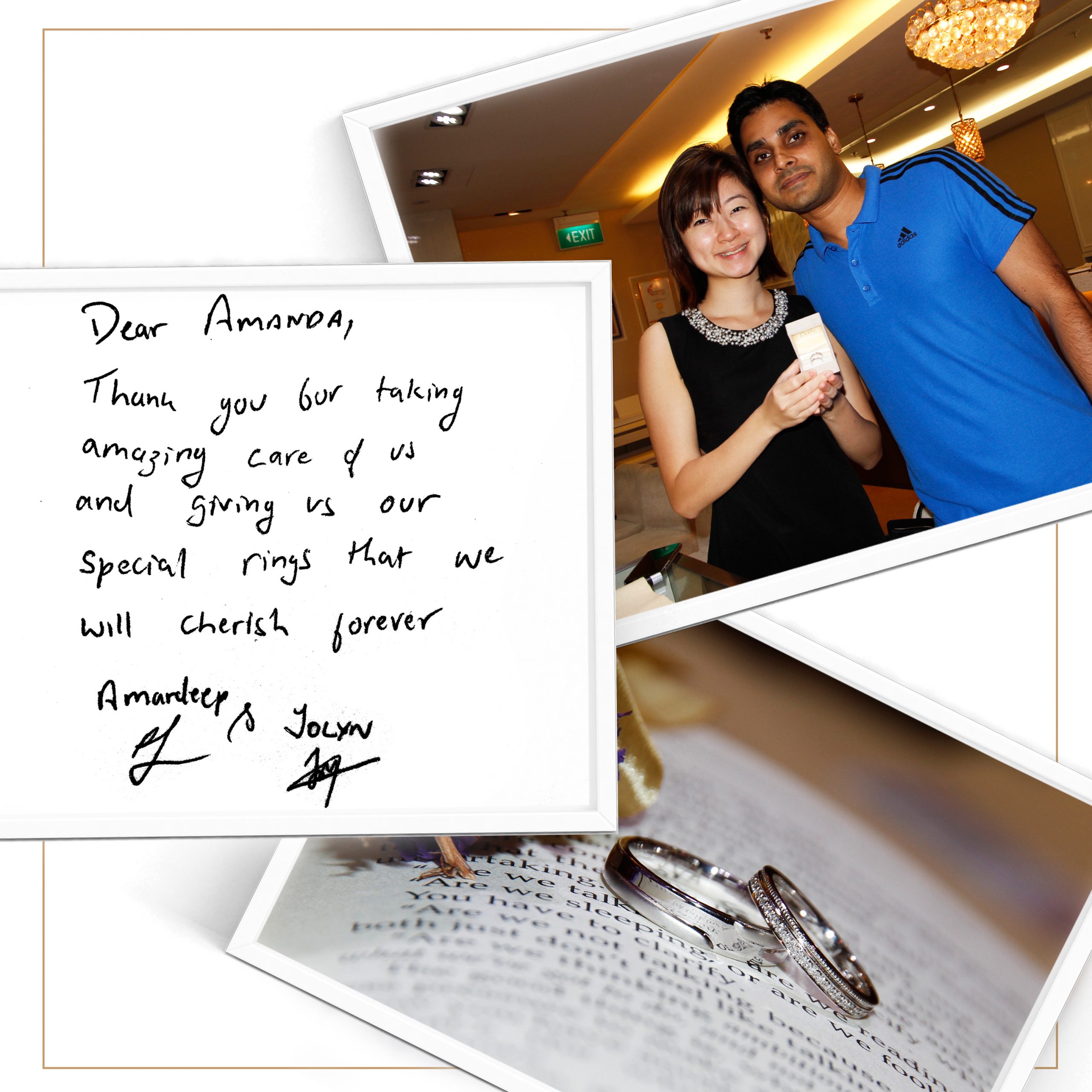 “Dear Amanda, thank you for taking amazing care of us and giving us our special rings that we will cherish forever.” – Amardeer & Jolyn