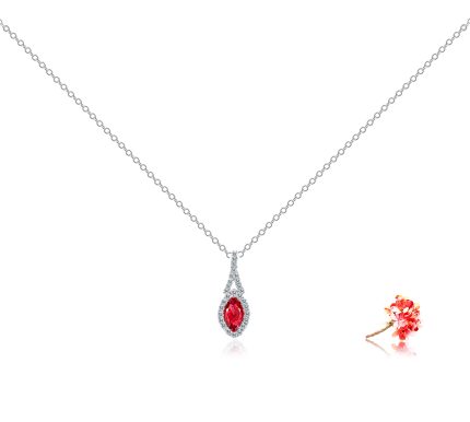 Marquise Brilliant Cut Ruby Pendant with Halo in 18k White Gold