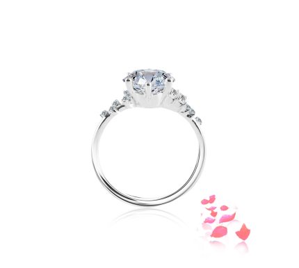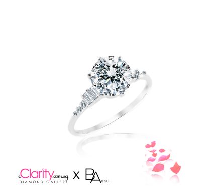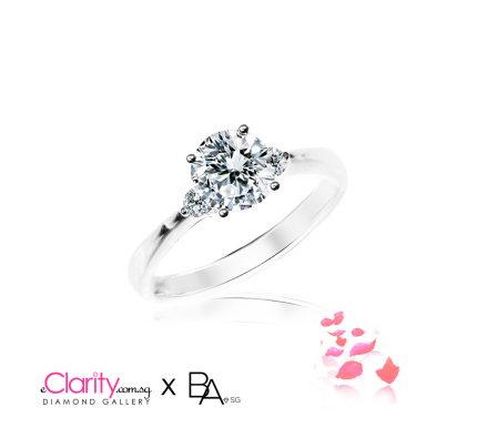 0.90 Carat [Natural] GIA Diamond D VS2 Engagement Ring with Diamonds in 18k White Gold Trilogy Extravagant