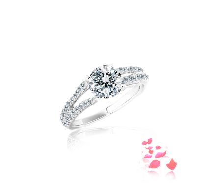 1.02 Carat [Natural] GIA Diamond J SI2 Engagement Ring Swirl Shank with Diamonds in 18k White Gold Tango