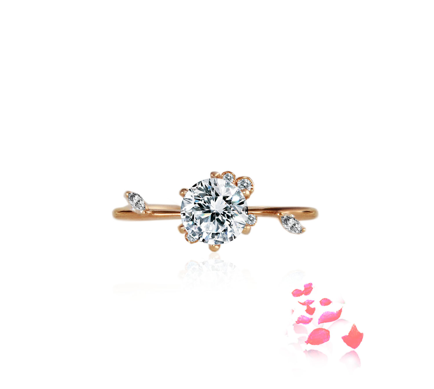 1 Carat [Natural] GIA Diamond Engagement Ring with Diamonds in 18k Rose Gold, Jazz Extravagant (G/VS) Ready-to-Ship