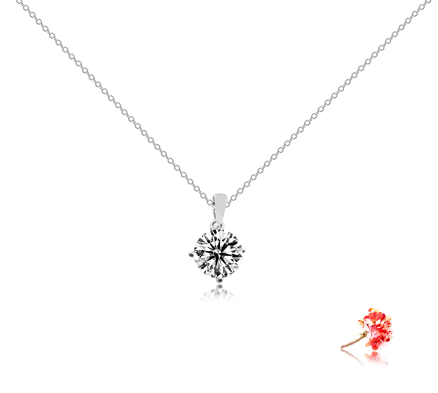 This classic pendant feature a 1 carat GIA round brilliant cut colourless centre diamond, set in a timeless 18k white gold pendant with 4 prongs.