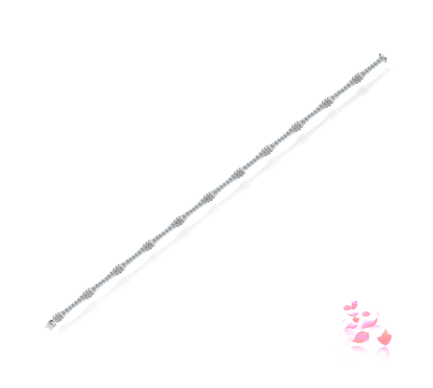 Diamond bracelet with 77 round brilliant diamonds 1.37 carat and 32 baguette diamonds 1.28 carat in 18k gold, white.