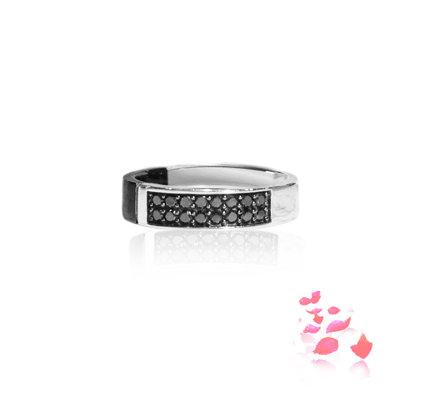 Home Gifts for Him Black Diamond Ring in 18k Black and White Gold