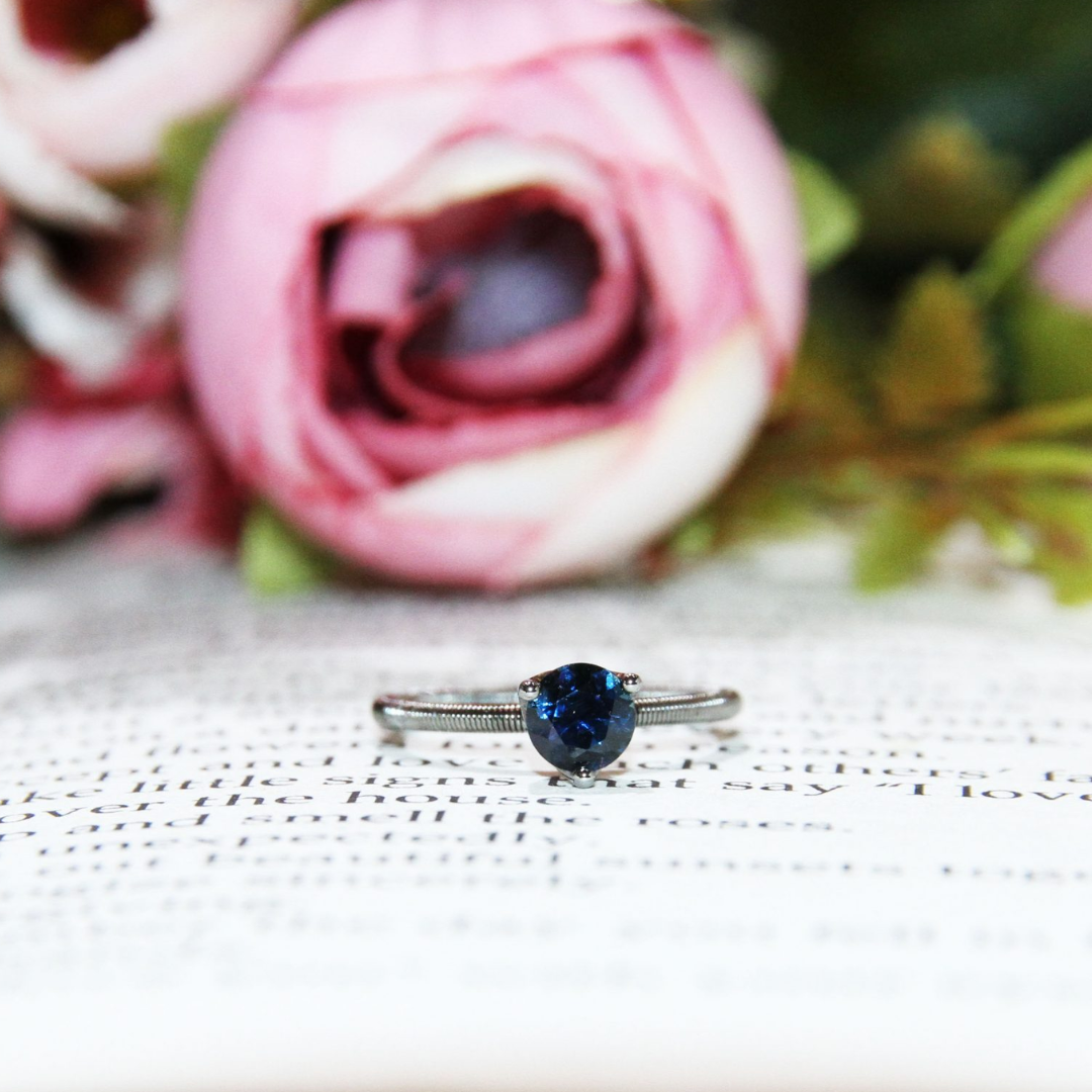 Blue Sapphire ring with 1 Round Blue Sapphire 0.65ct in 18k gold, white.