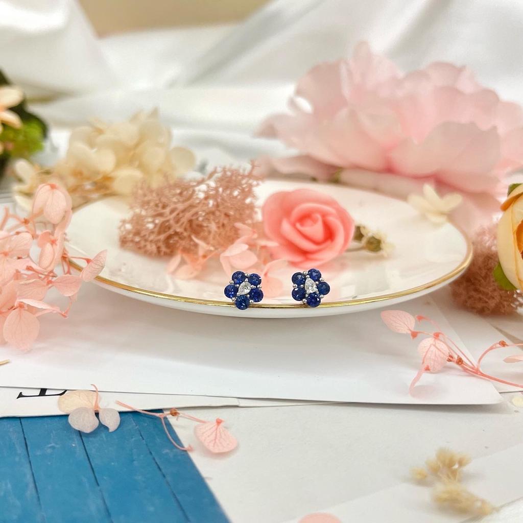Home Bespoke / Customised Jewellery Blue Sapphire Stud Earrings with Diamonds in 18k Gold, White