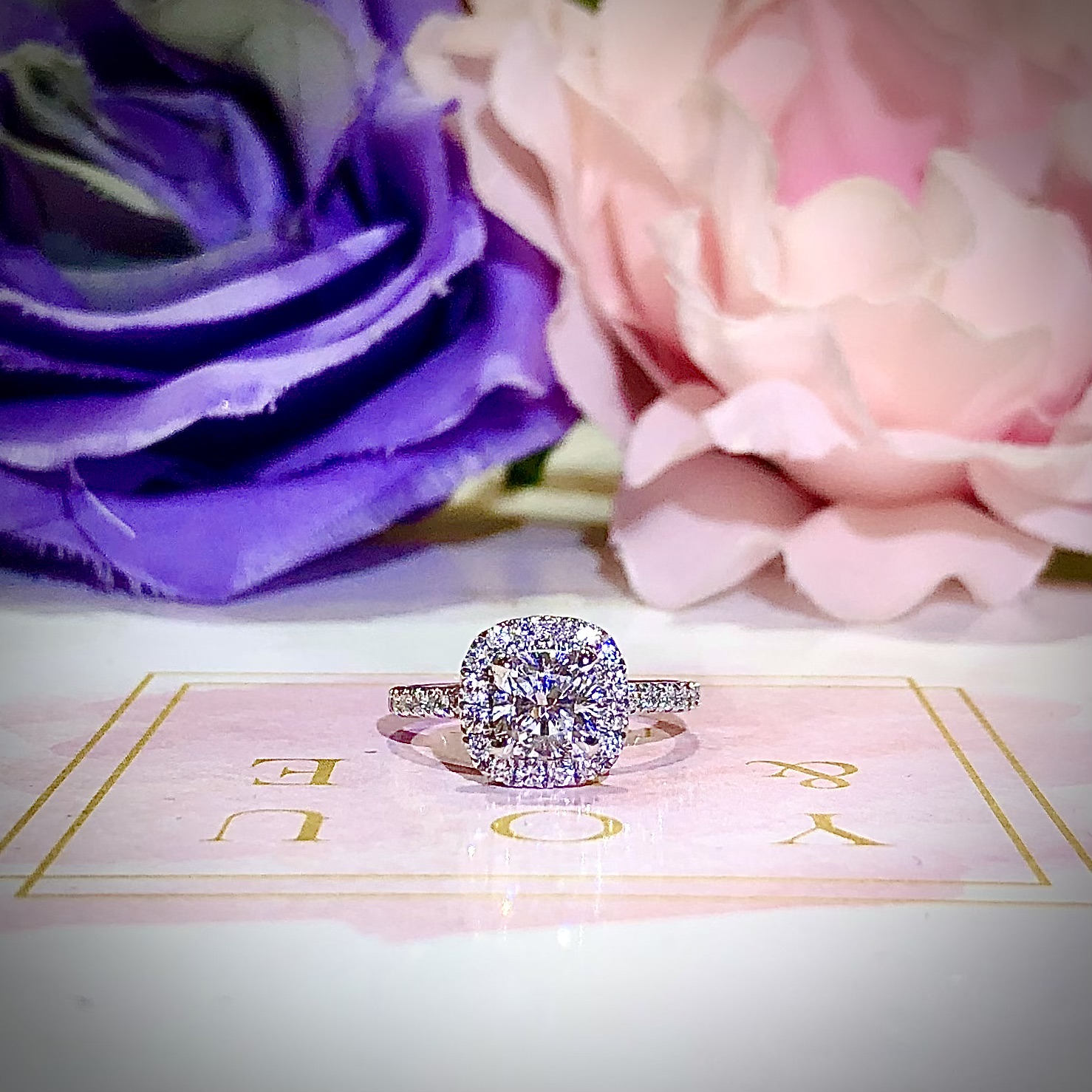 Home Bespoke / Customised Jewellery Cushion Cut Diamond Ring Full Circle in18k gold – White, Halo