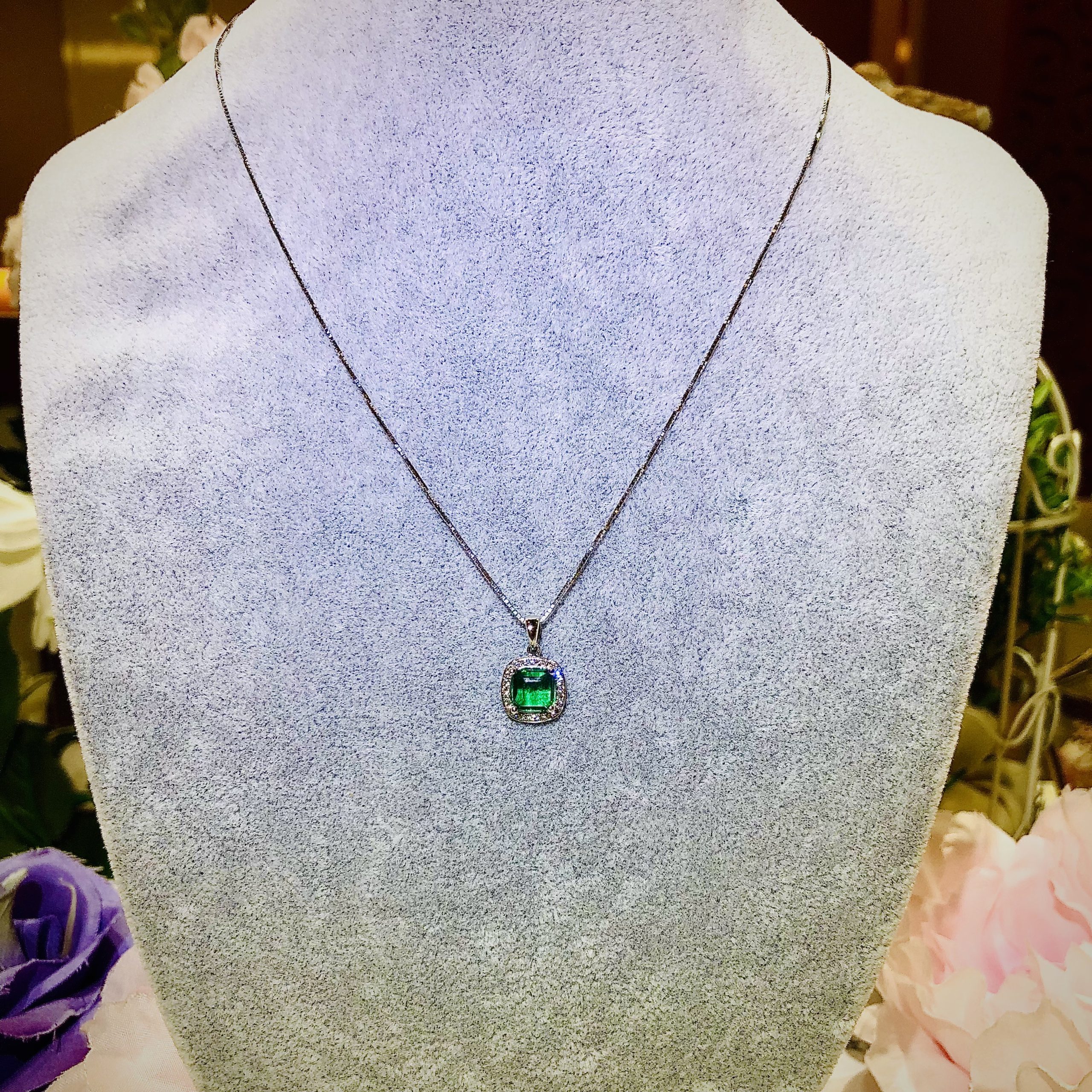 Cushion Emerald Pendant in 18k gold – White, Halo