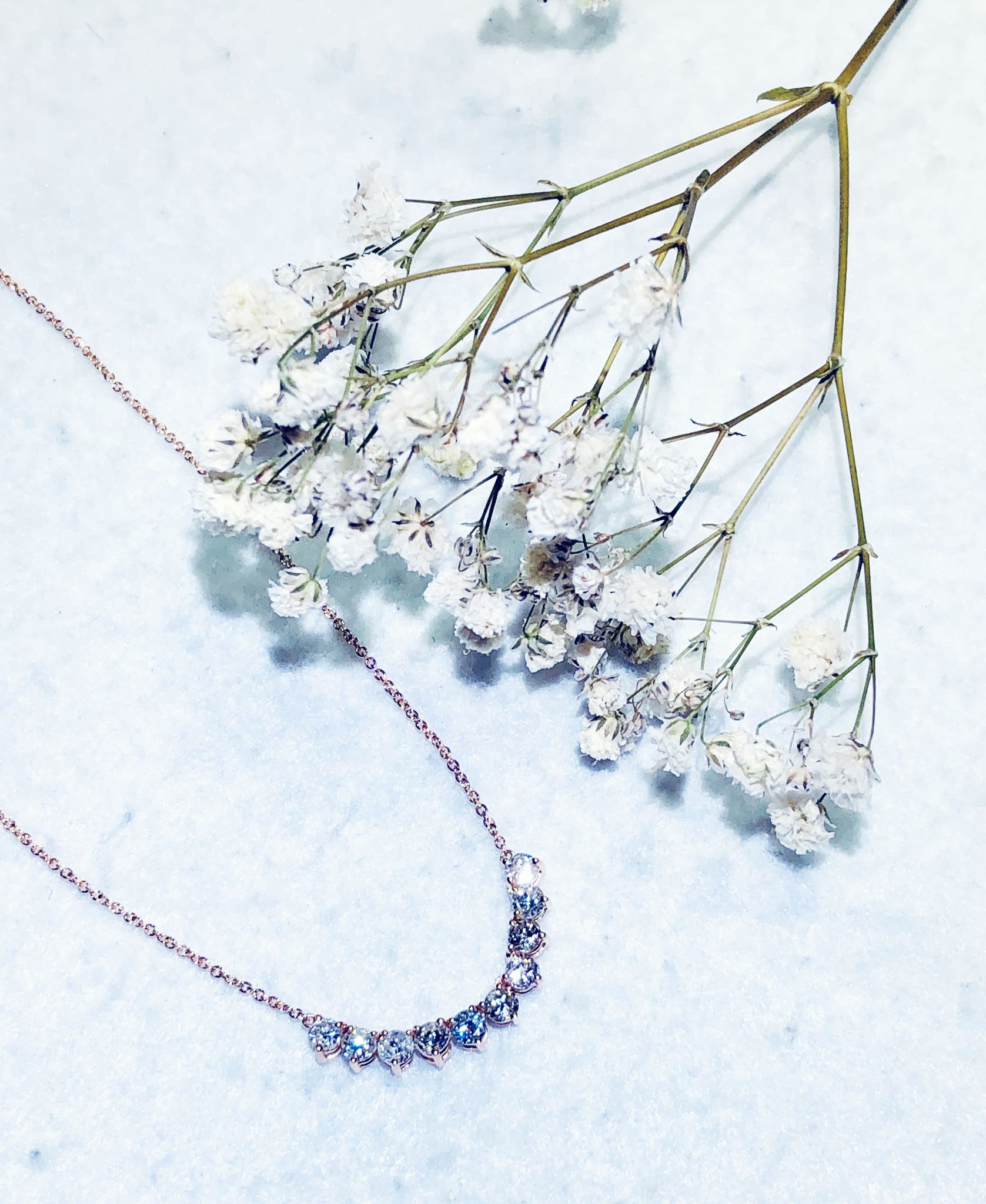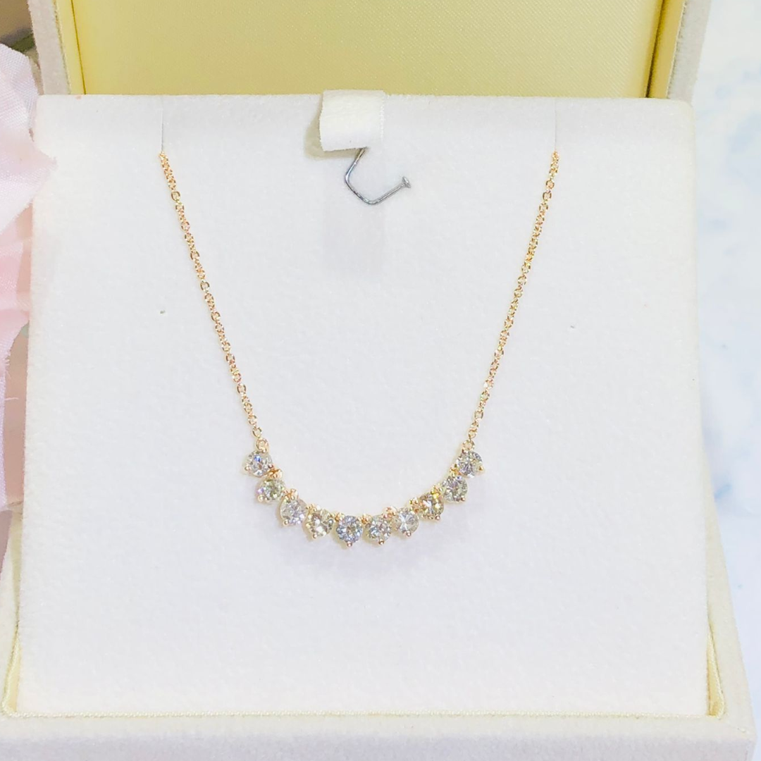Diamond necklace with round brilliant diamonds in 18k rose gold.