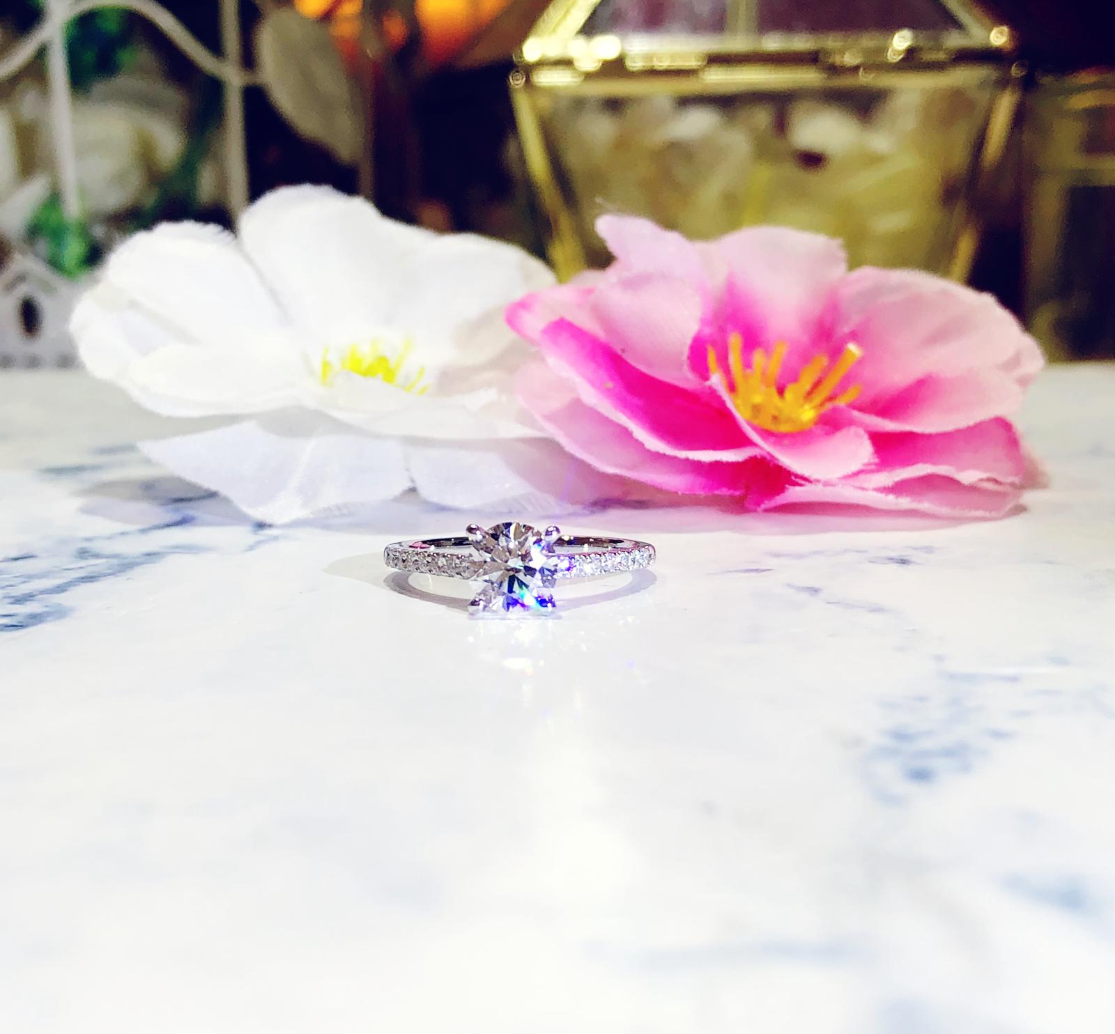 Home Recent Craftswork Diamond Ring with Pave Diamonds 4 Prongs in 18k gold – White, Classic Extravagant