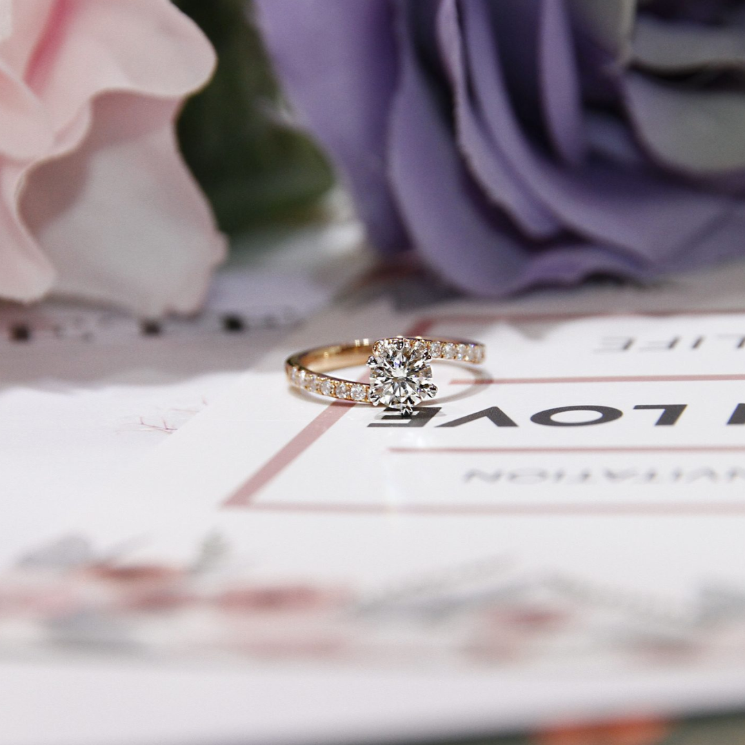 Home Bespoke / Customised Jewellery Diamond Ring with Pave Diamonds 6 Prongs in 18k Rose Gold – Tango Extravagant