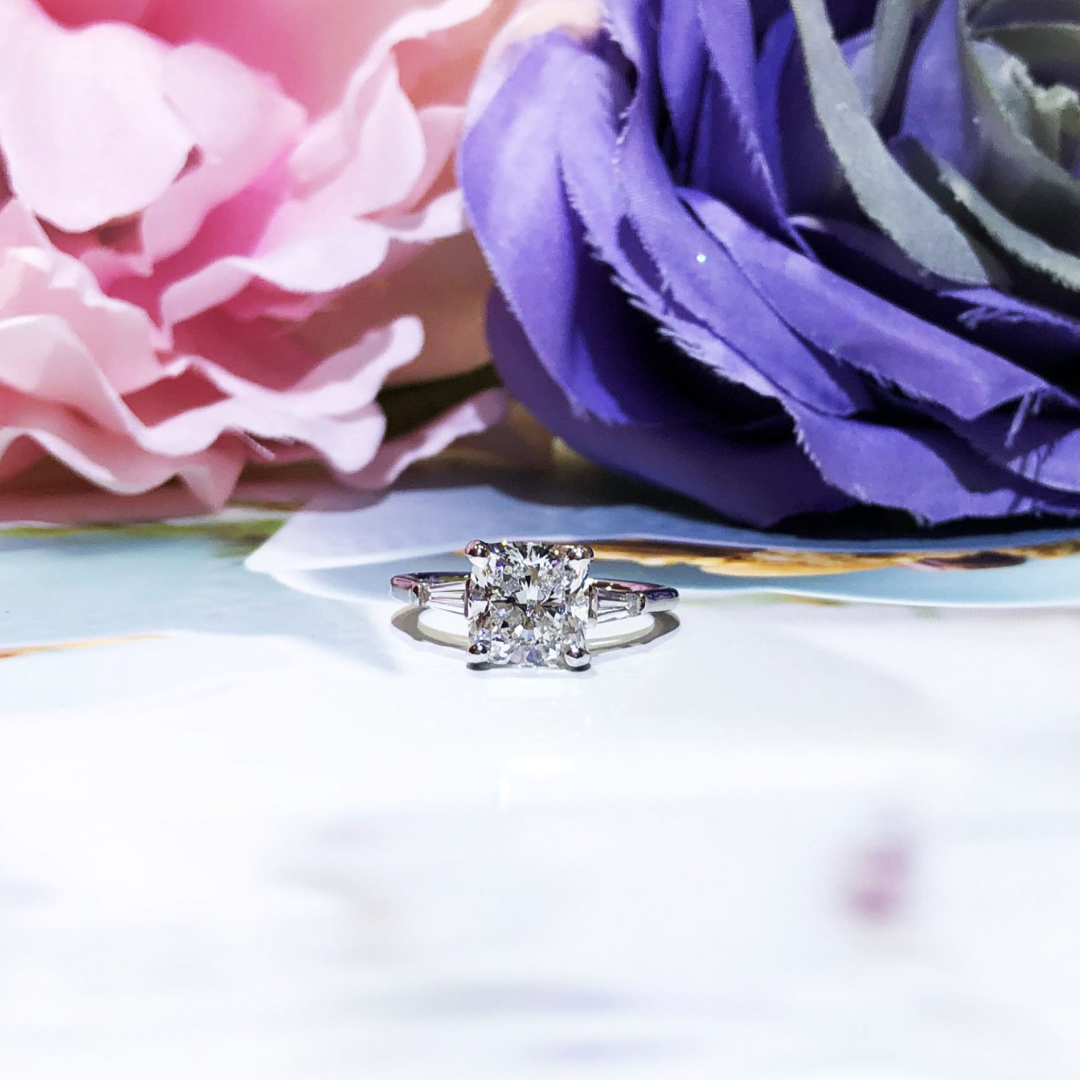 Home Bespoke / Customised Jewellery Diamond Ring with Side Baguette Diamonds 4 Prongs in 18k White Gold – Trilogy Extravagant