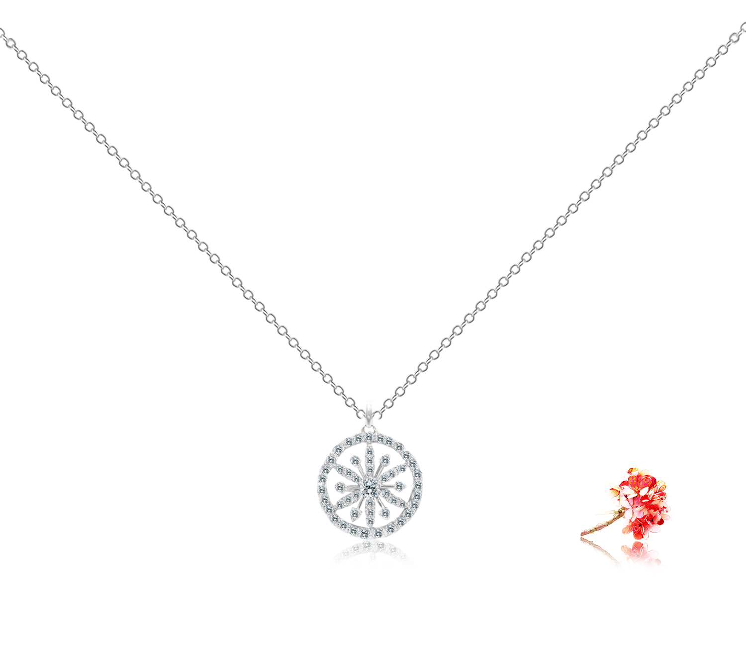 Diamond pendant with 1 round brilliant diamond 0.06 carat and 52 round brilliant diamonds 0.83 carat in 18k gold, white.