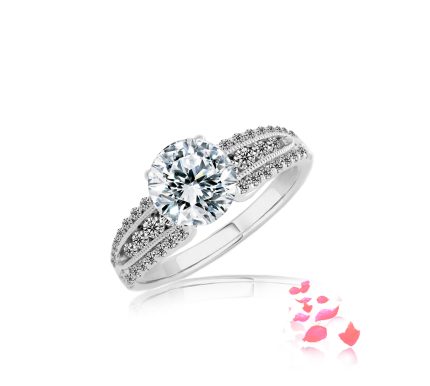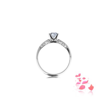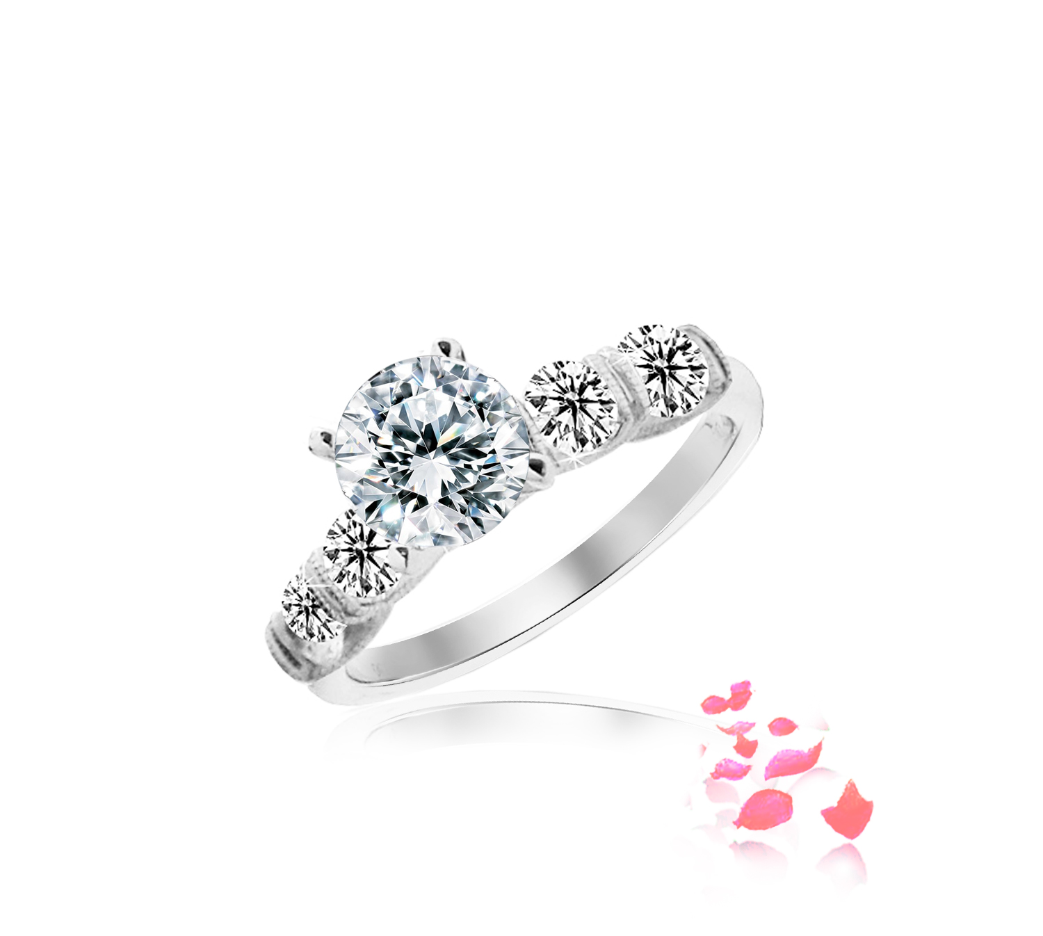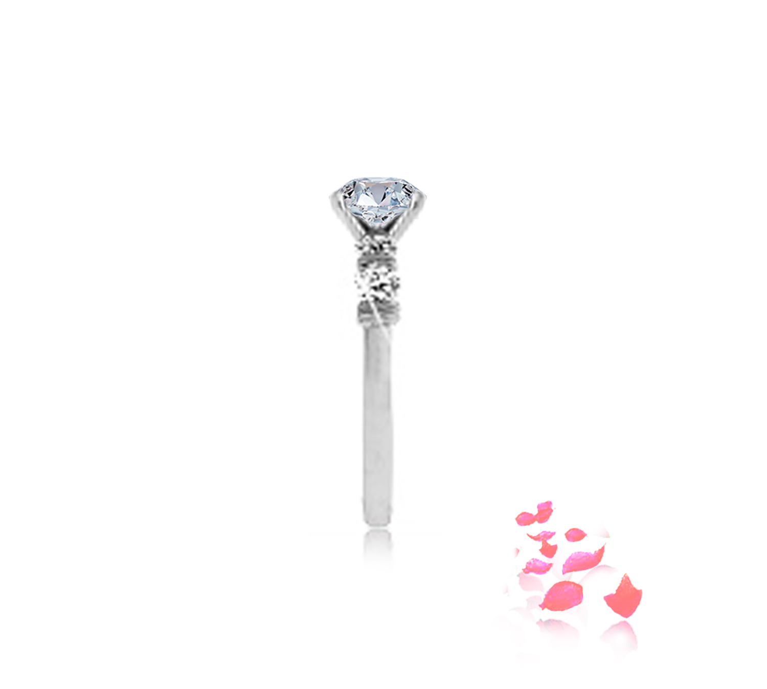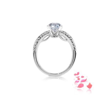 Diamond ring setting embraced by 4 prongs, enhanced with 4 round brilliant diamonds est 0.59ct in 18k gold. Can be crafted to set a centre diamond carat sizes 0.30 to 3ct, white, rose, yellow, platinum.