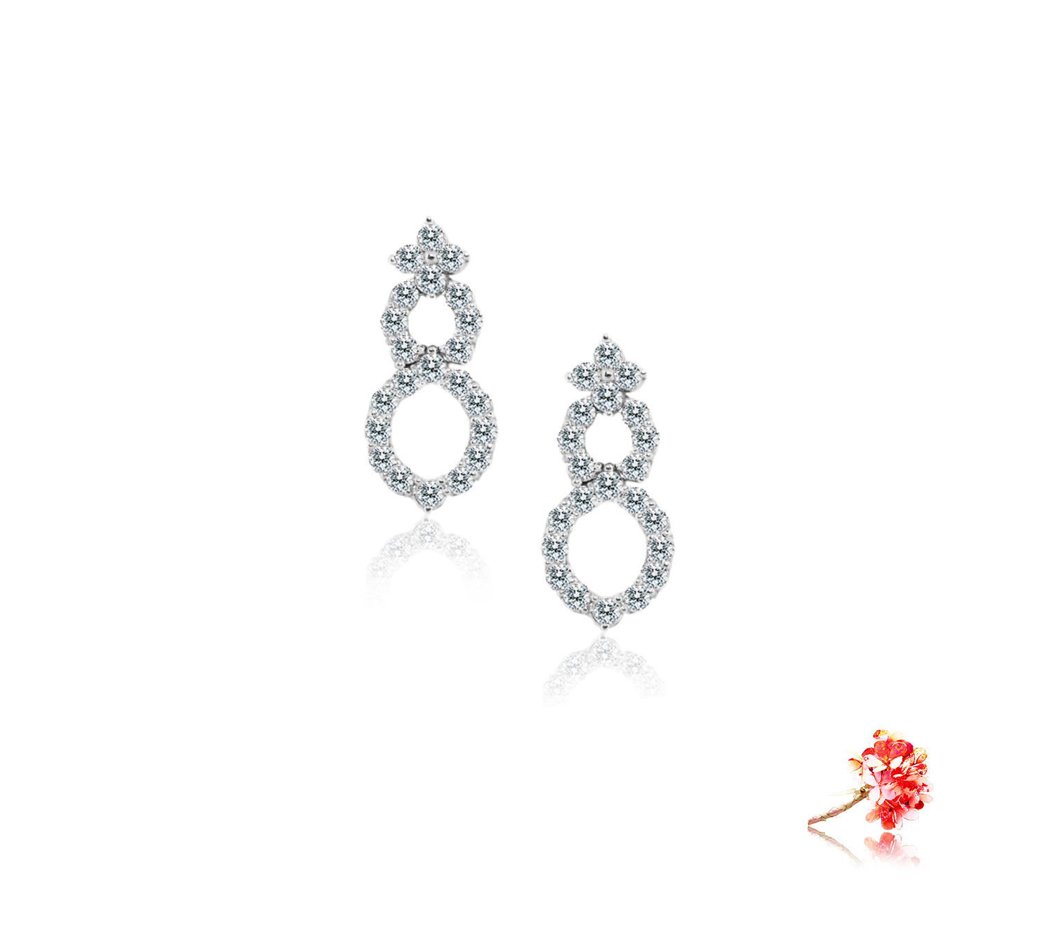 Diamond earrings with 44 round brilliant diamonds 2.61 carat in 18k gold, white.
