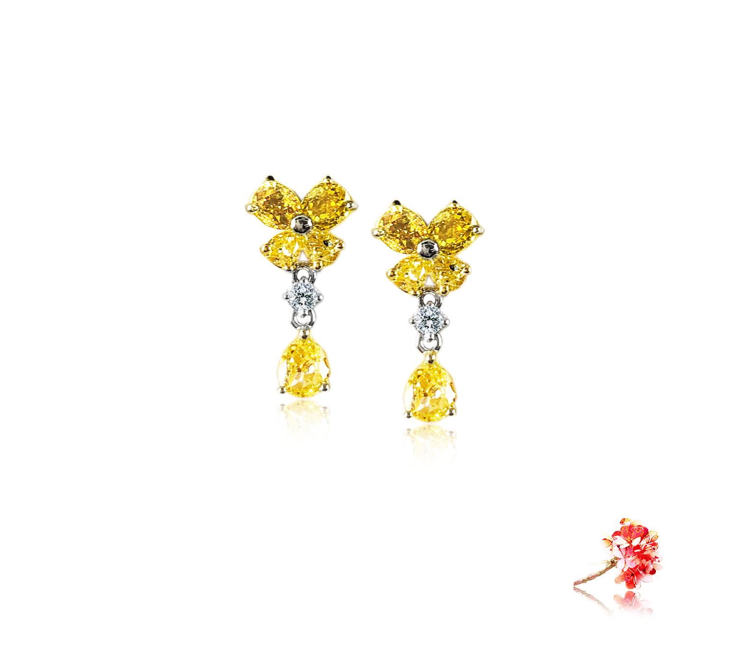 Earrings with 10 yellow sapphires 1.35 carat and 2 round brilliant diamonds 0.05 carat in 18k gold, white and yellow. (E532)