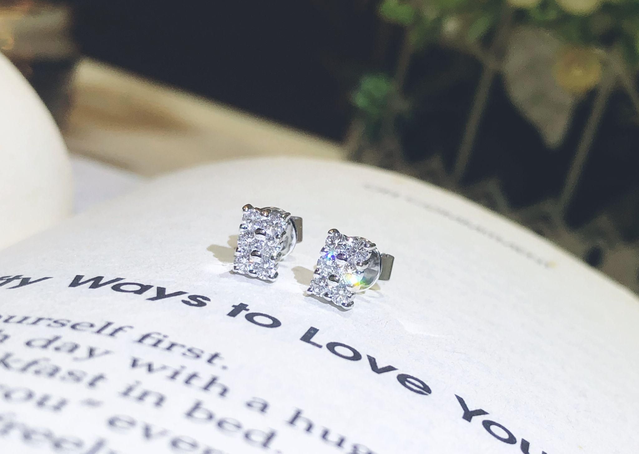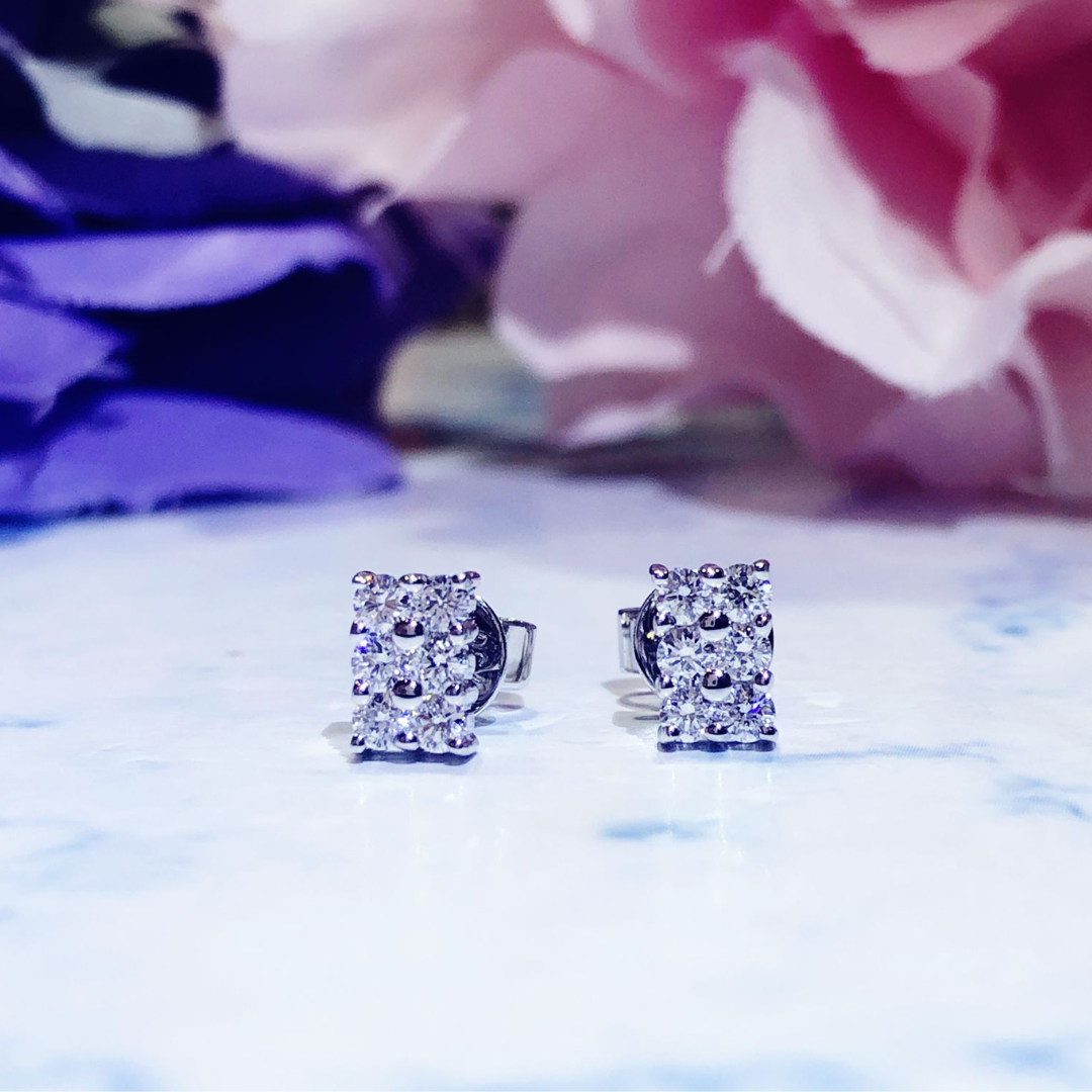 Home Bespoke / Customised Jewellery Earrings with Diamonds Cluster in 18k Gold – White