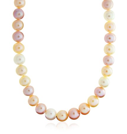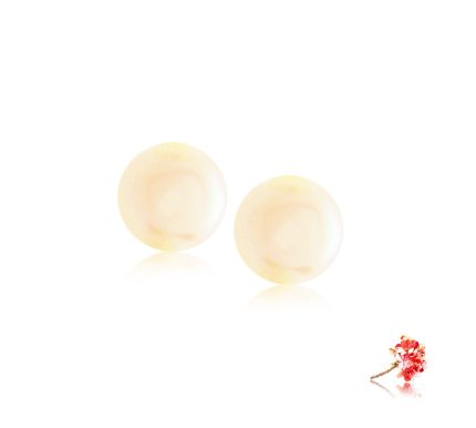 Freshwater pearl earrings with an 18k gold earring backings. 10-11mm diameter pinkish/creamy overtone.