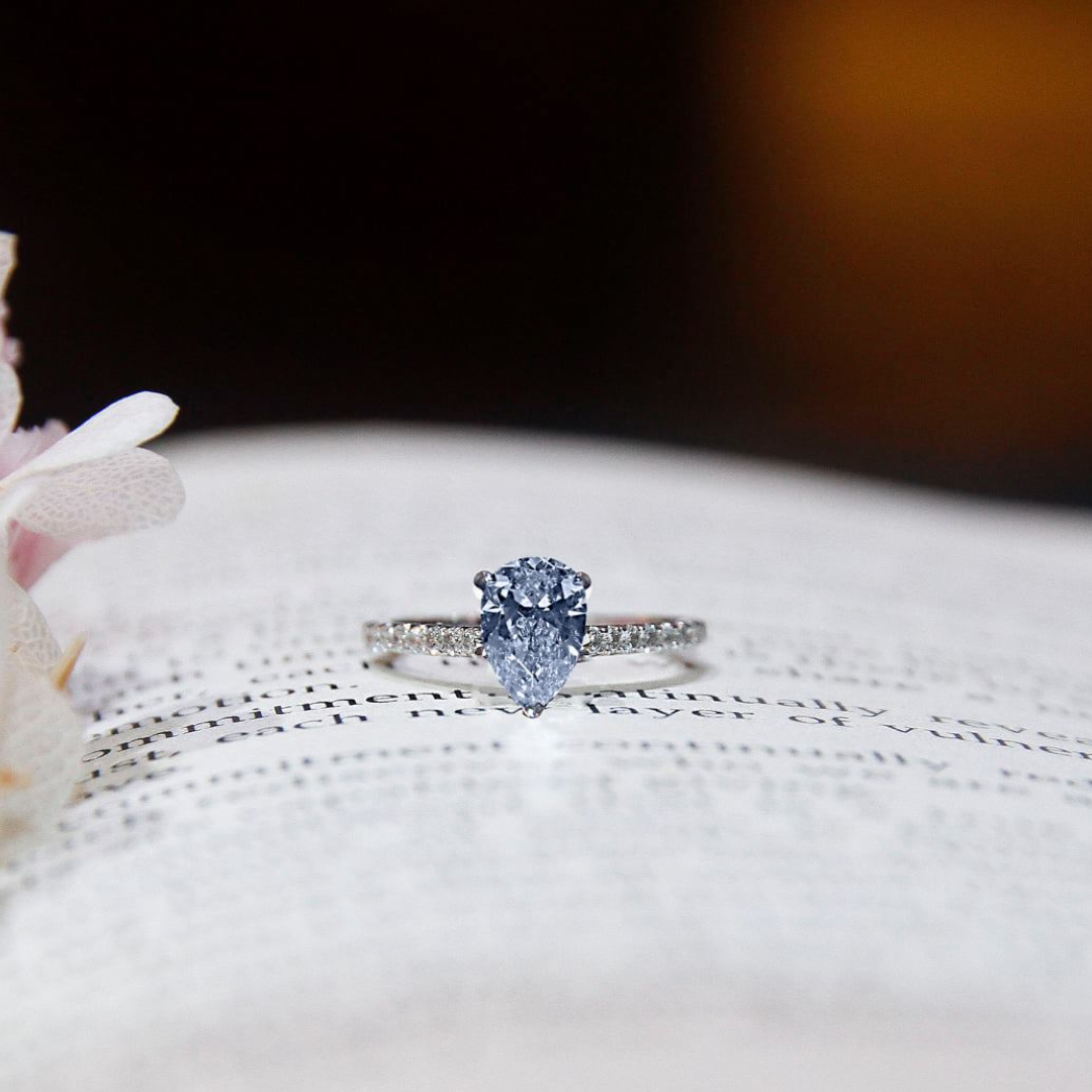 Home Bespoke / Customised Jewellery Fancy Blue Pear Shape Diamond Ring with 3 Prongs in 18k Gold, White