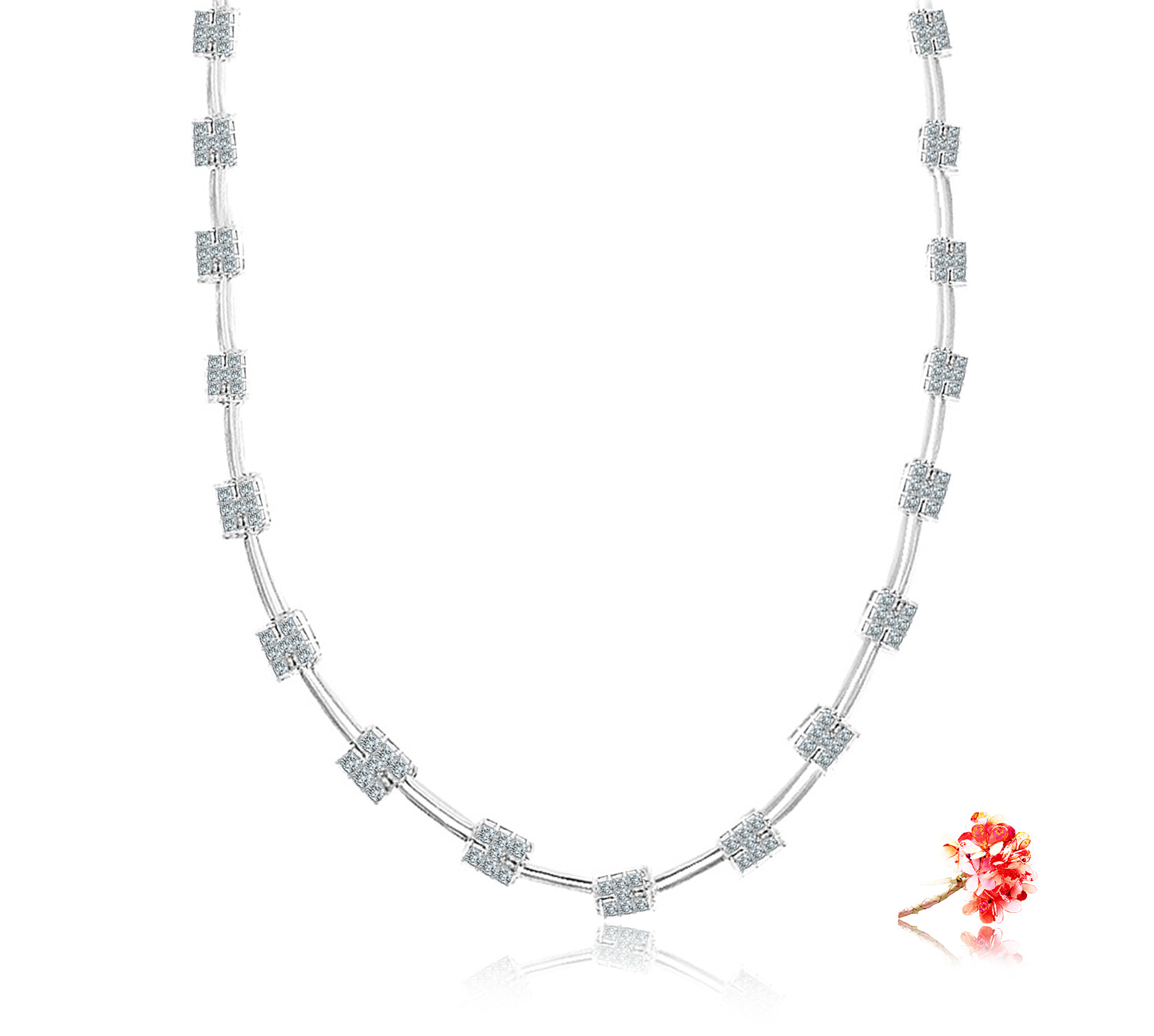 Diamond necklace with 161 princess cut diamonds 9.95 carat in 950 platinum