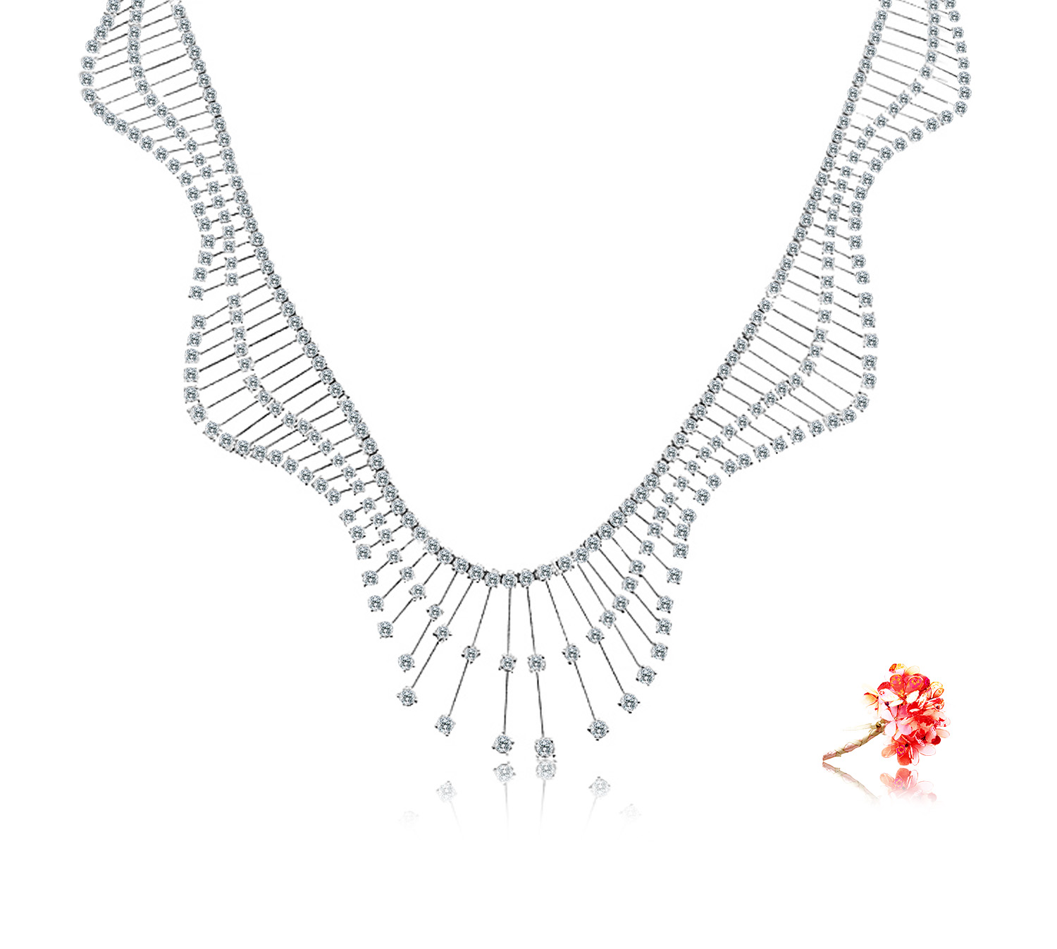 Diamond necklace with 492 round brilliant diamonds 23.45 carat in 18k gold, white.