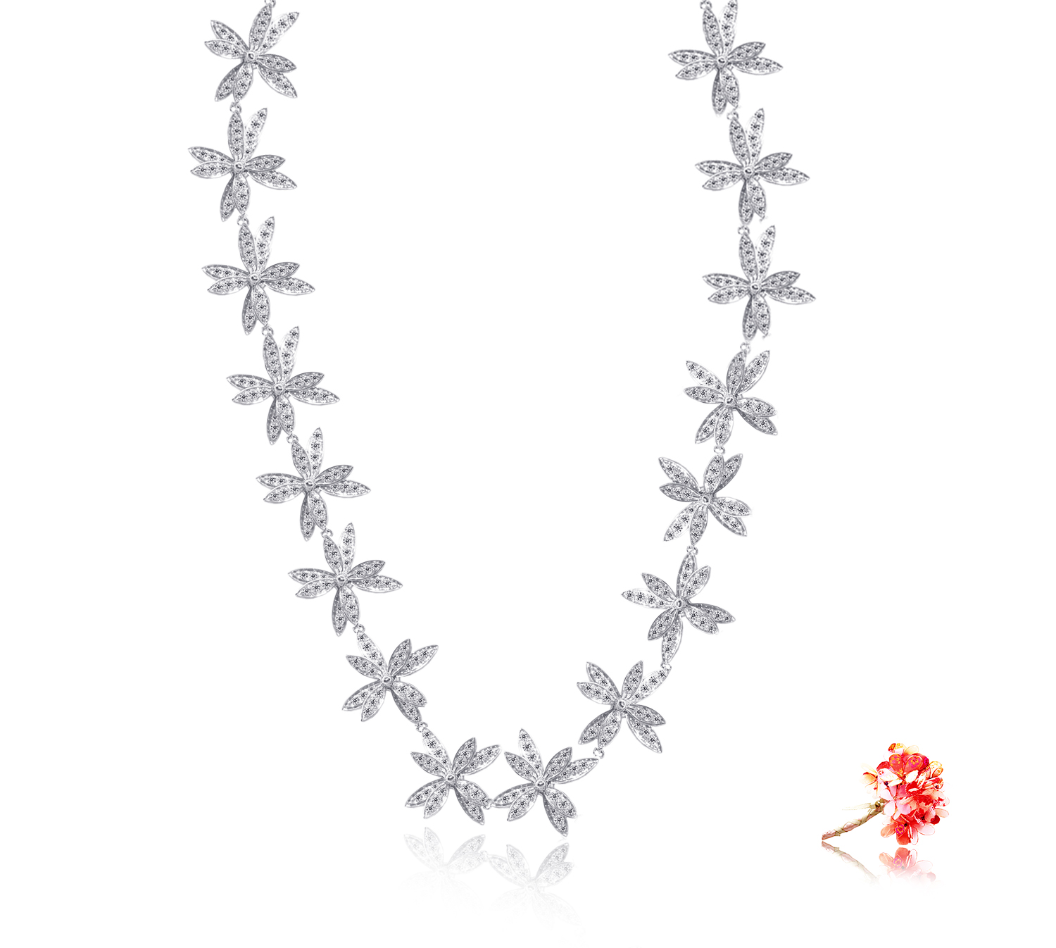 Diamond necklace with 731 round brilliant diamonds 4.05 carat in 18k gold, white.
