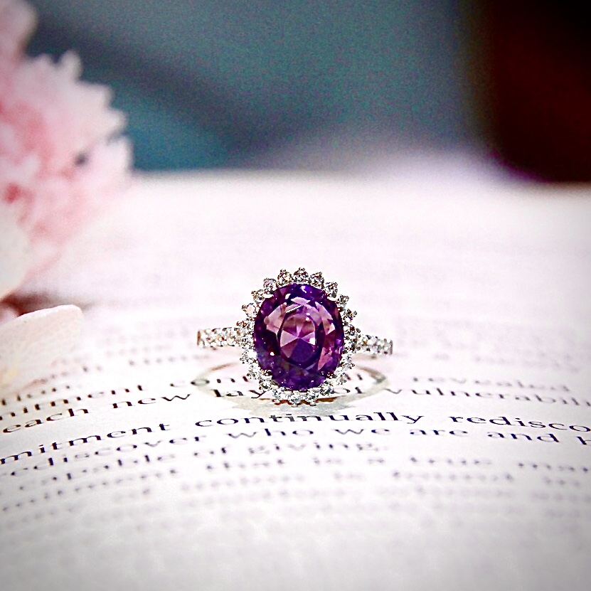 Home Bespoke / Customised Jewellery Oval Amethyst in 18k White Gold, Halo