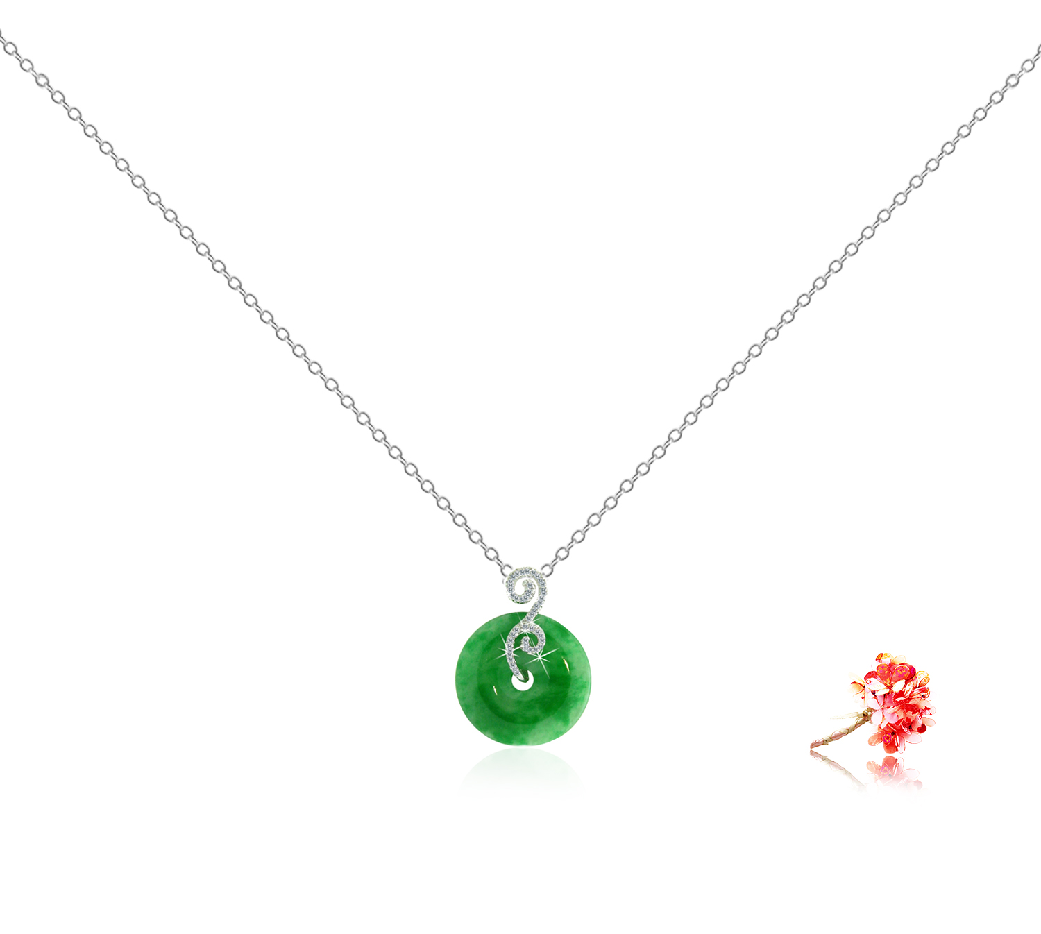 Diamond Jade pendant with 33 round brilliant diamonds 0.102carat in 18k gold, white.