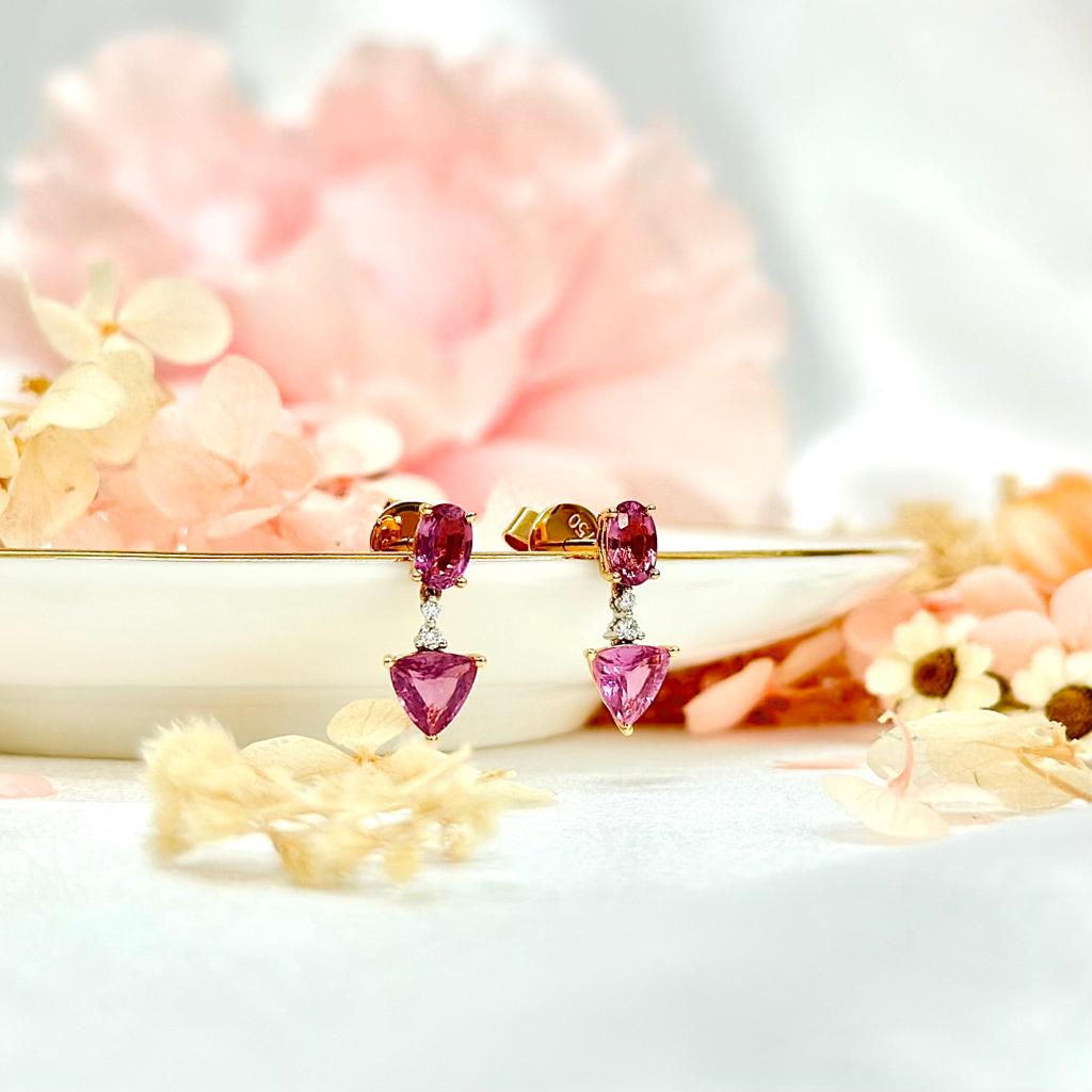 Home Bespoke / Customised Jewellery Pink Sapphire Earrings with Diamonds in 18k Gold, Rose