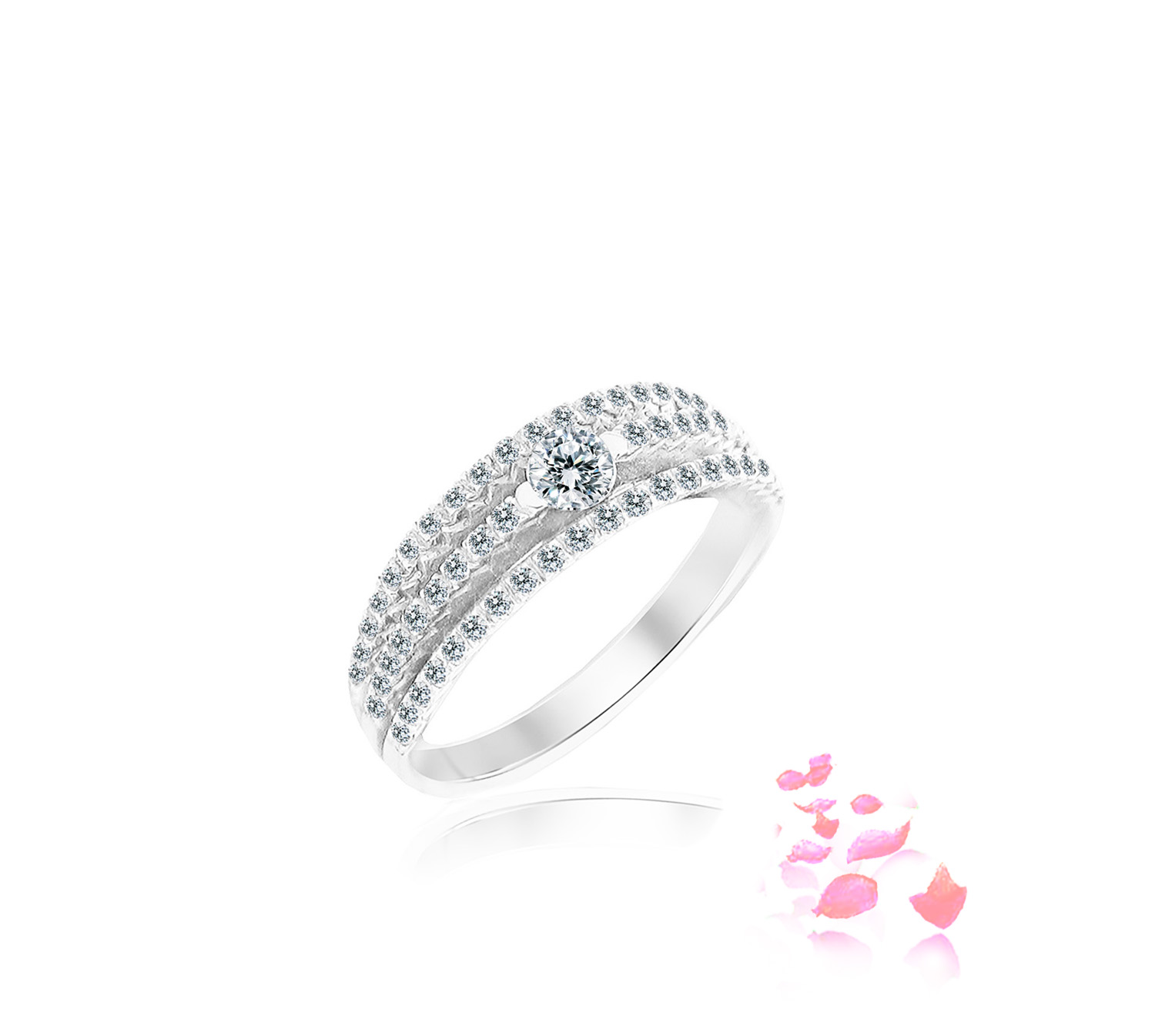 Diamond ring with 1 round brilliant diamond 0.16 carat and 60 round brilliant diamonds 0.36 carat in 18k gold, white. (R54)