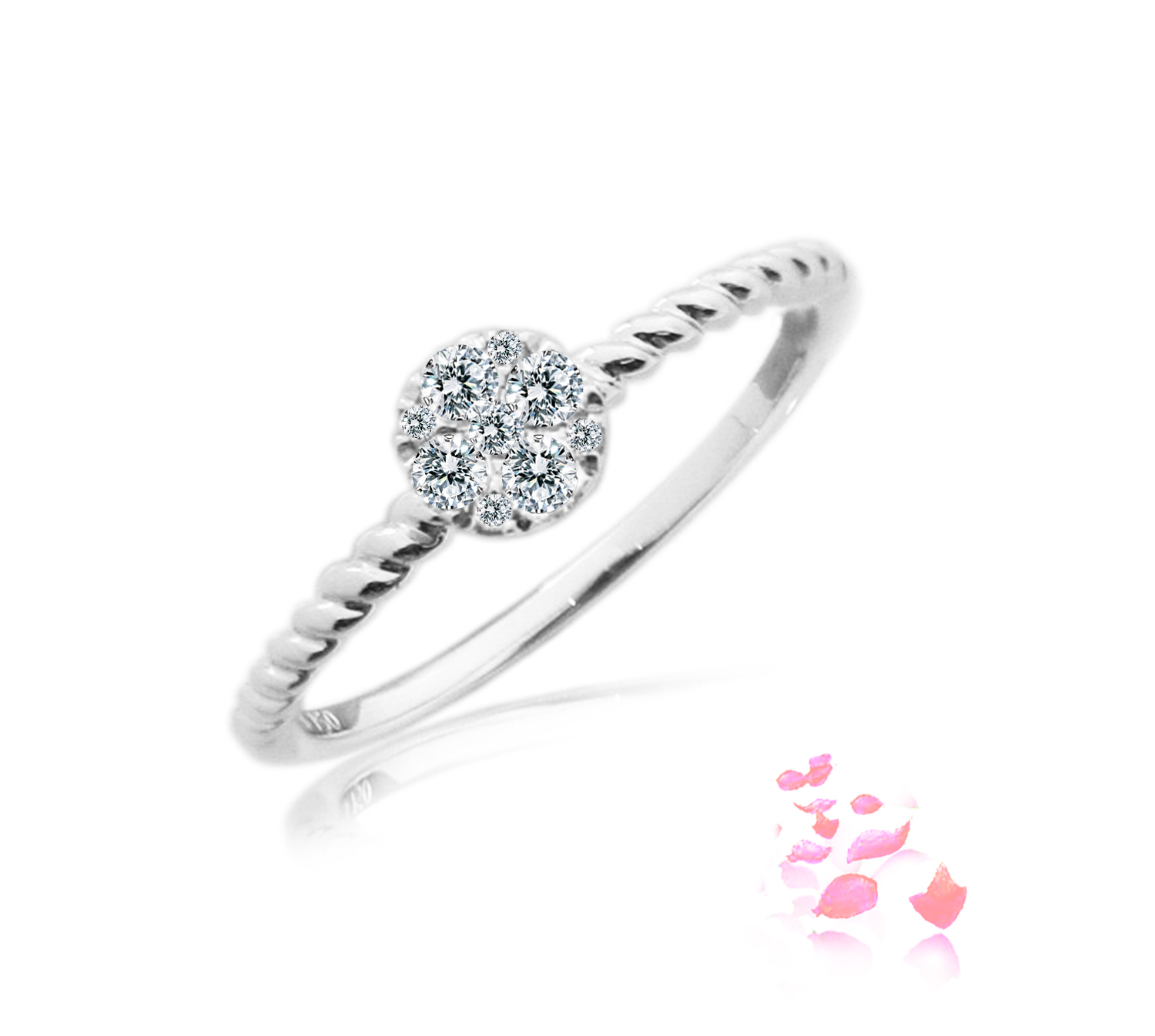 Diamond ring scintillating with 9 round brilliant diamonds 0.16 carat in 18k gold, white.