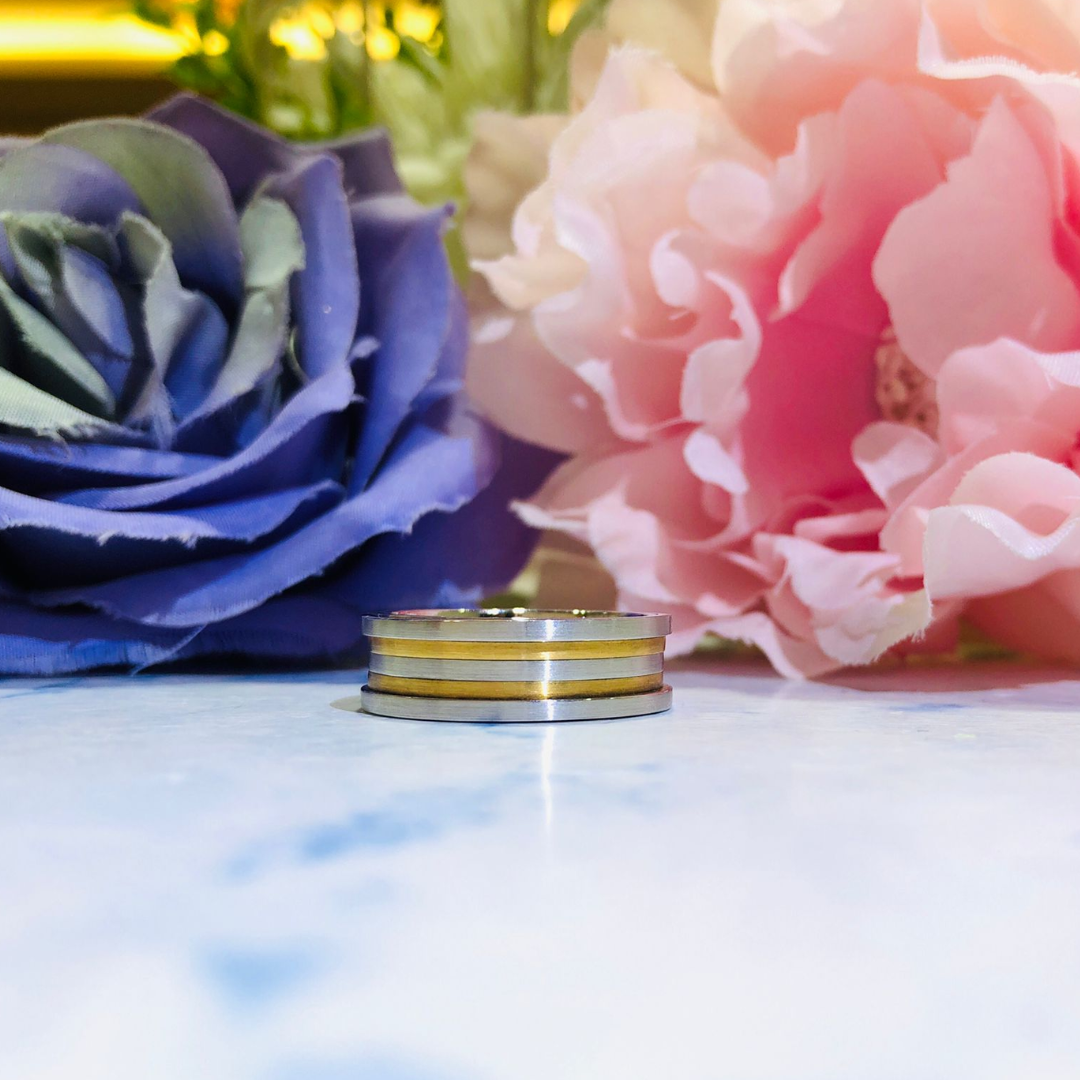 Revolving band in 18k gold, white and rose. Estimate broadness 7mm. White and rose satin matte.