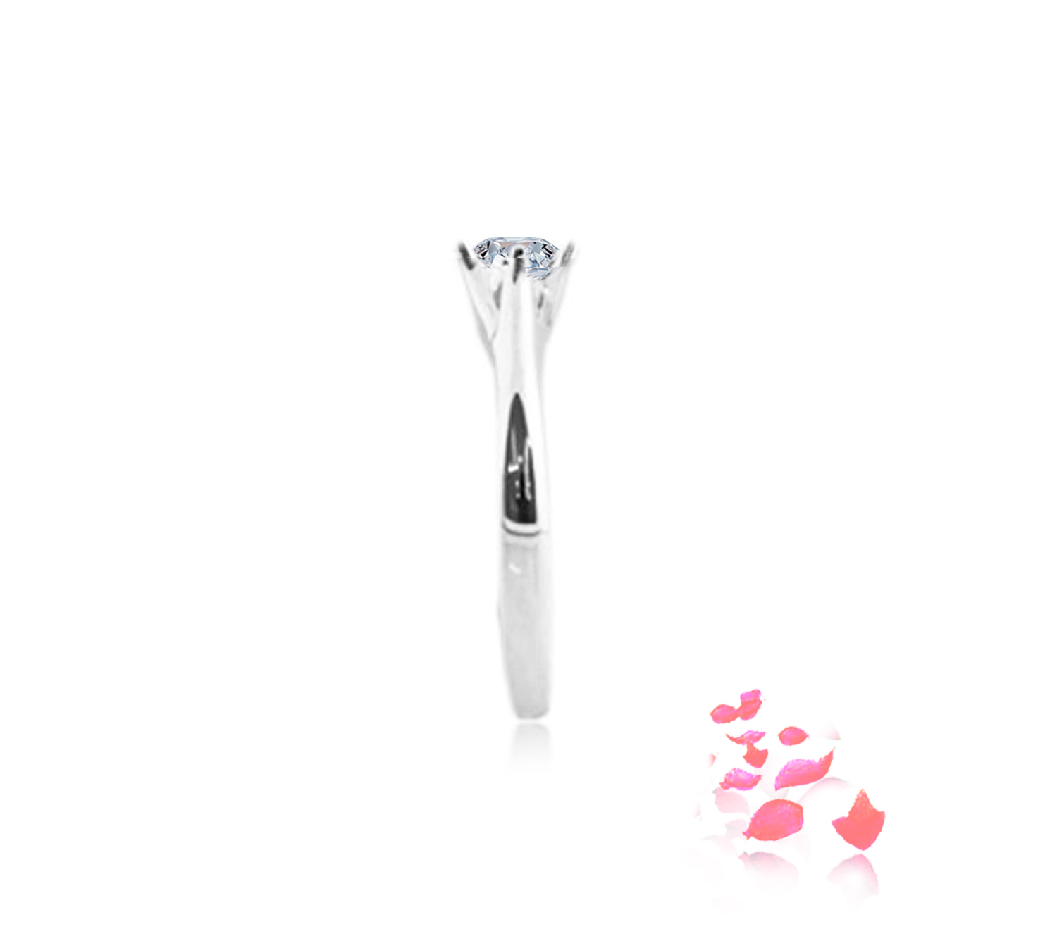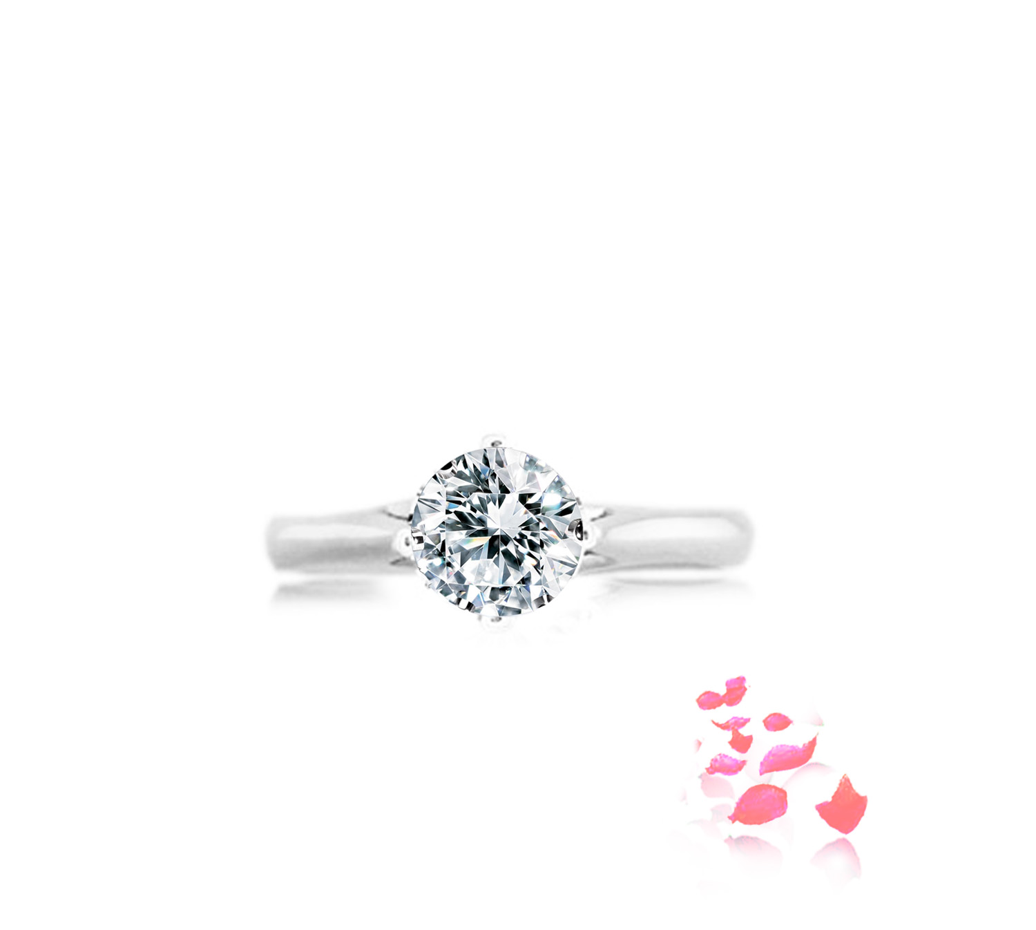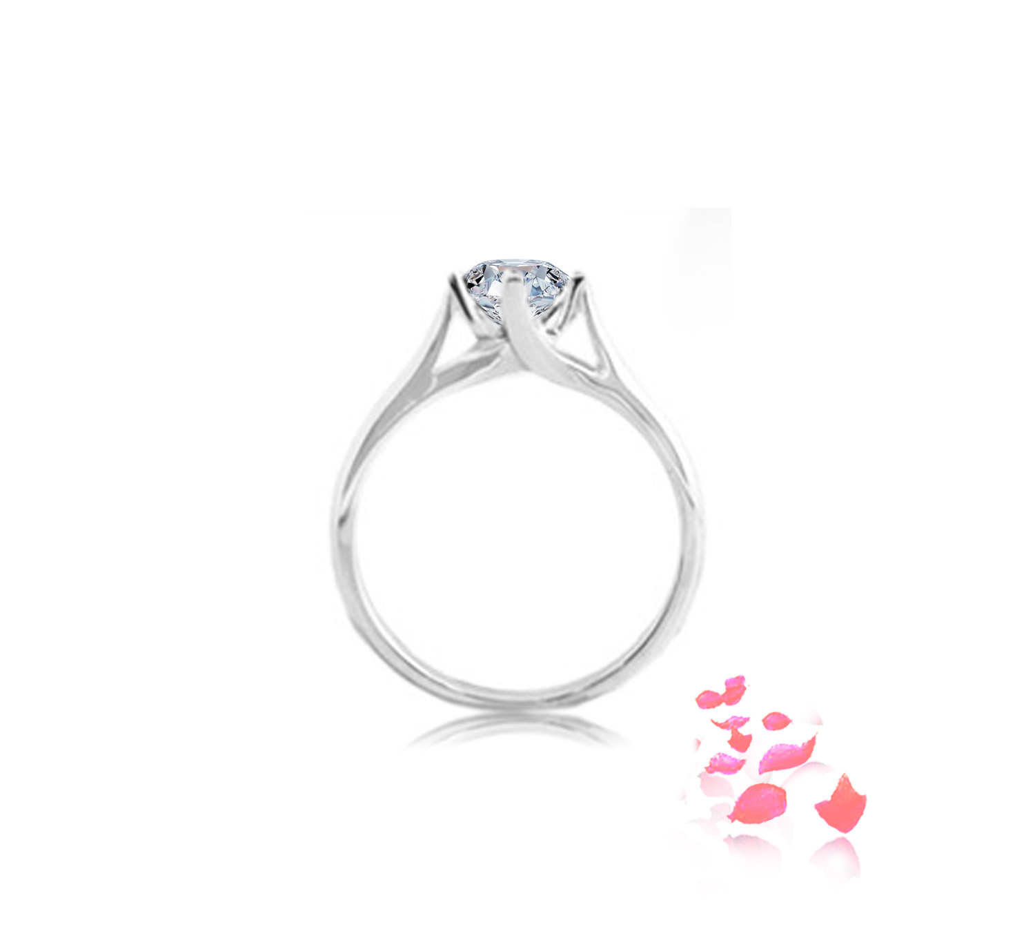 Diamond ring setting embrace by 4 prongs, and it’s ring shank with classic design, in 18k gold. Can be crafted to set a centre diamond carat sizes 0.30 to 3ct, white, rose, yellow, platinum.