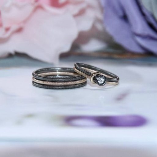 Home Bespoke / Customised Jewellery Wedding Bands with Diamond in 18k Rose and Black Gold