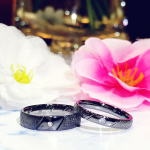 Wedding Bands with diamonds. Antique matte finishing in 18k gold, black.