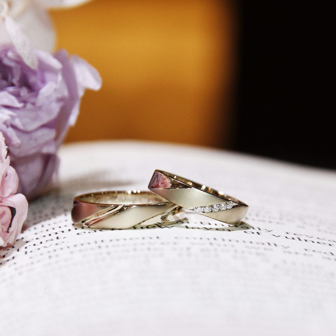 Wedding Bands with Diamonds in 18k Gold, White & Champagne. Champagne gloss and velvet matte finishing.