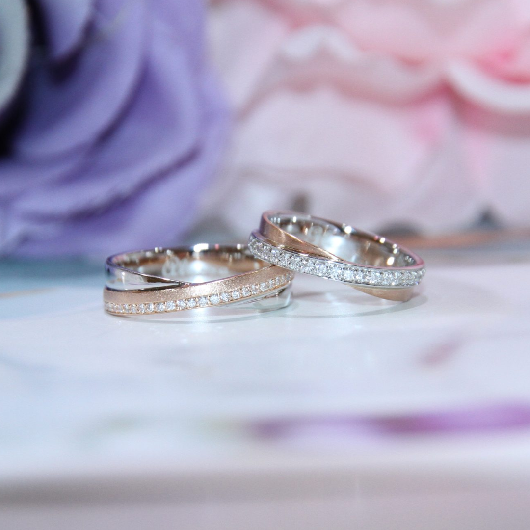 Wedding Bands with Diamonds in 18k White and Rose Gold