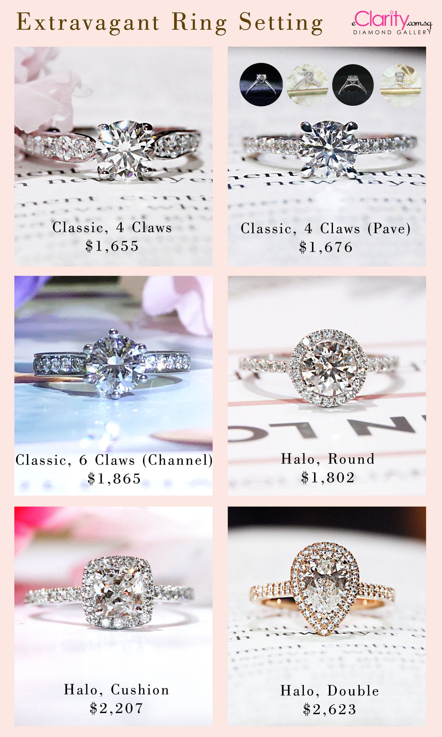 Proposal ring designs, Part 4. The extravagant collection features up-class clusters of diamonds on designs and unforgettable sparkles, for many years of anniversaries to come.